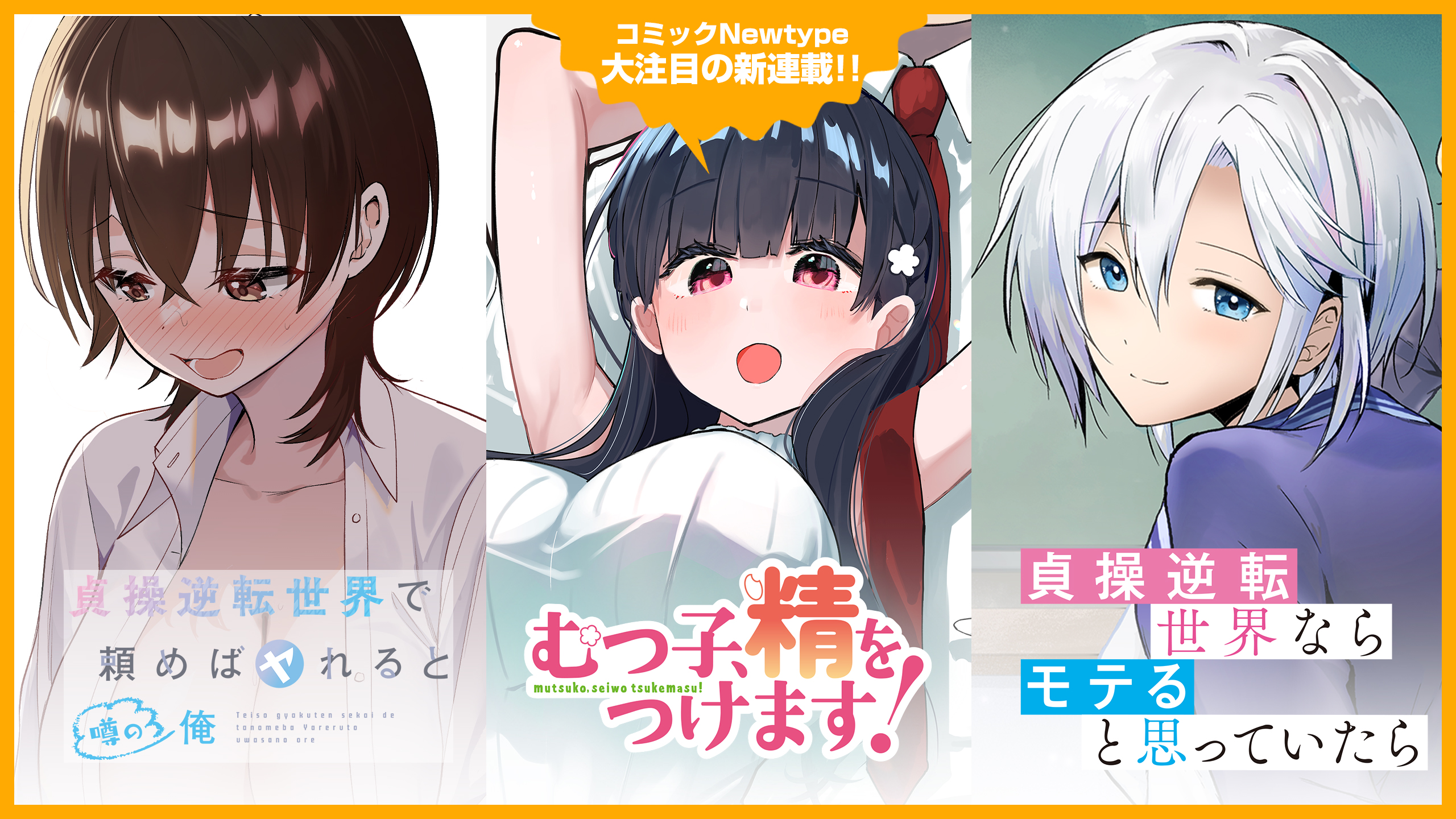【新連載告知 第1弾】『貞操逆転世界で頼めばヤれると噂の俺』『むつ子、精をつけます!』『貞操逆転世界ならモテると思っていたら』3作品が「コミックNewtype」にて連載スタート!