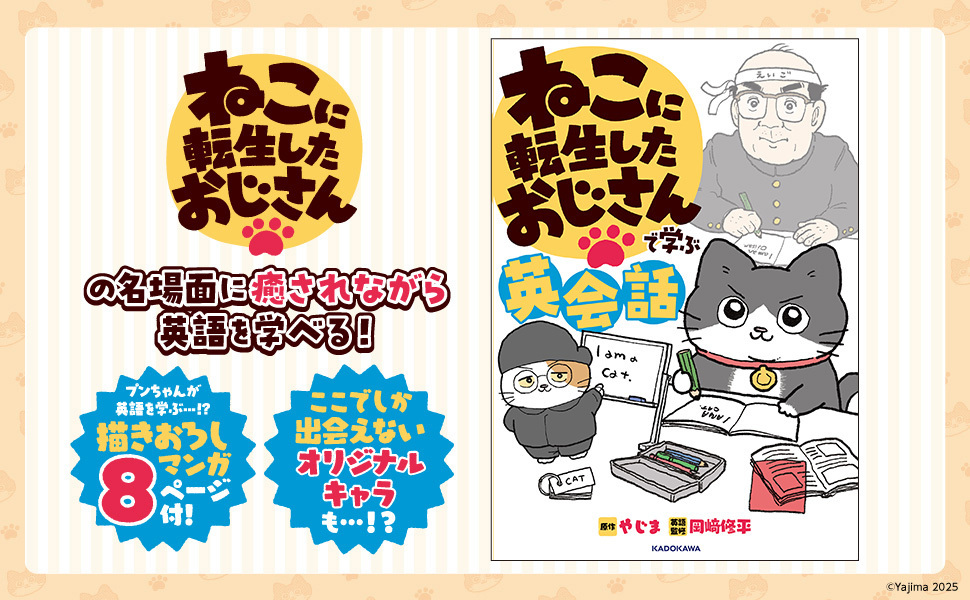 おじさんが猫に転生!? 名場面に癒やされながら英語が身につく『ねこに転生したおじさんで学ぶ英会話』が2025年11月13日(木)発売!