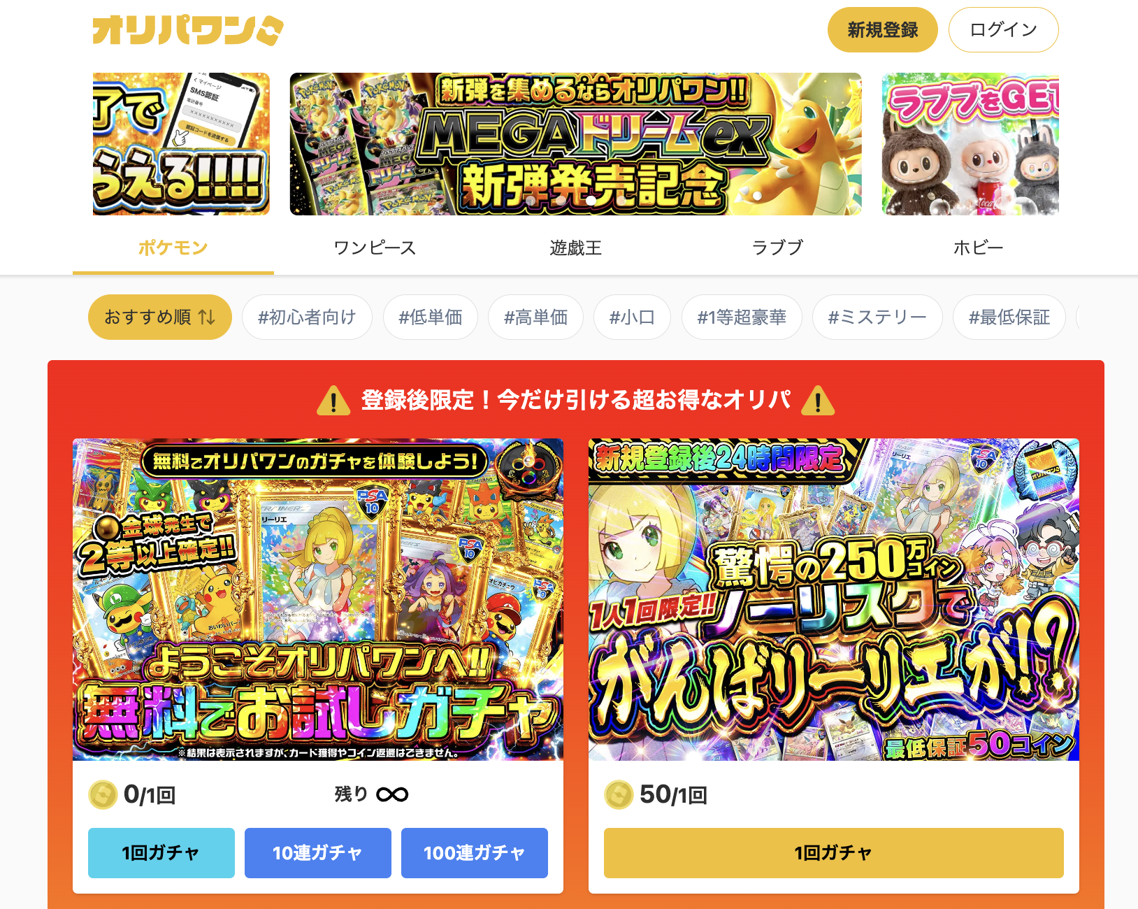 【新弾MEGAドリームex解禁!】オリパワンが総還元率100%超の発売記念ガチャを緊急リリース!今週も豪華イベント連発!
