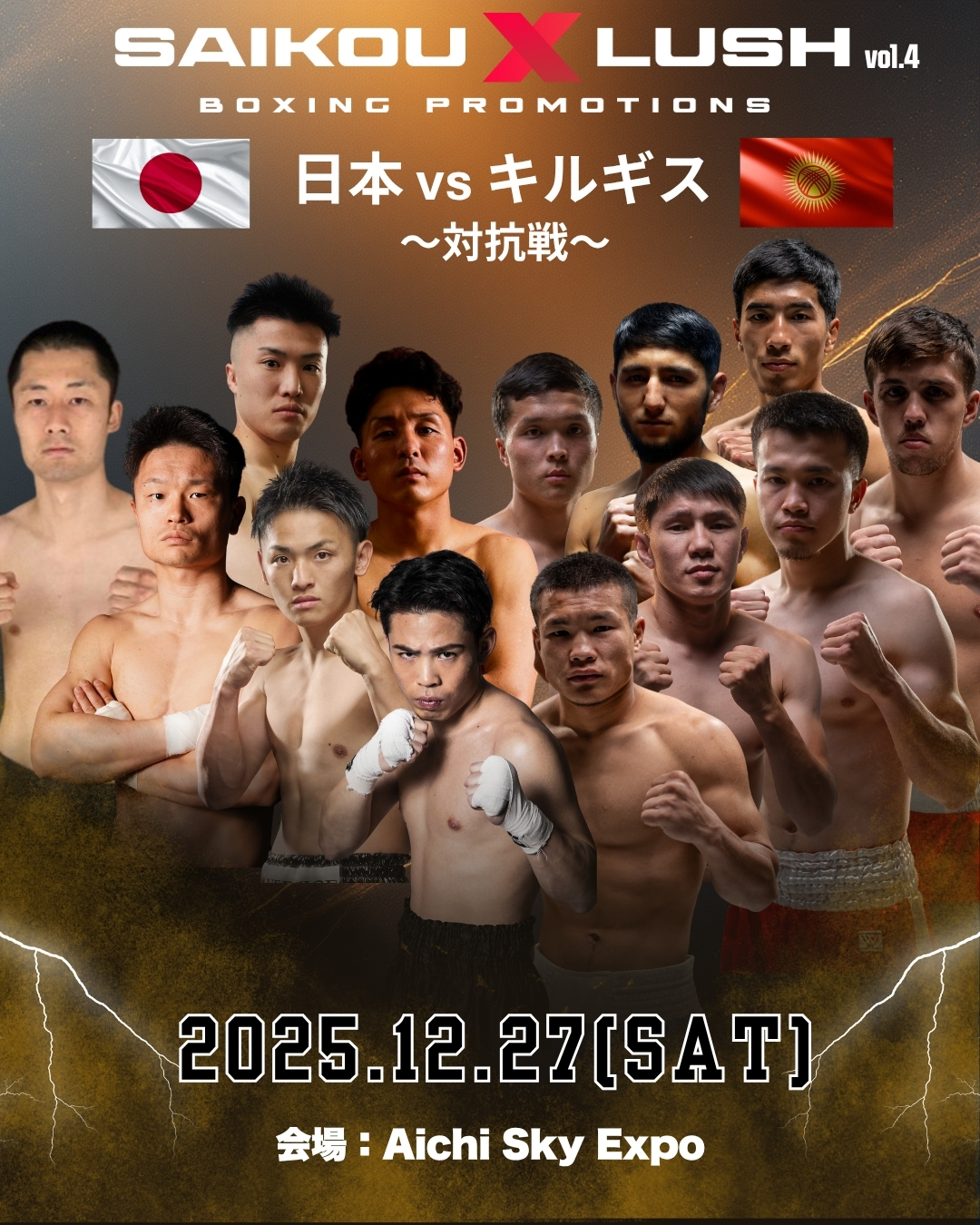 【SAIKOU × LUSH vol.4 in JAPAN】追加カード発表:日本 対 キルギス の7対7の豪華対抗戦が実現!中央アジアの猛者と日本の実力派ボクサーがチーム戦で勝敗を競う。