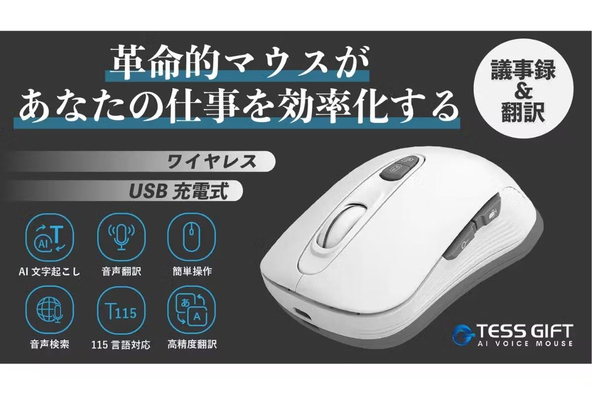 【作業の圧倒的効率化】文字起こし・翻訳・検索を指先ひとつで。AIライティングマウス「TESS GIFT」が1月20日よりCAMPFIREで先行販売開始!