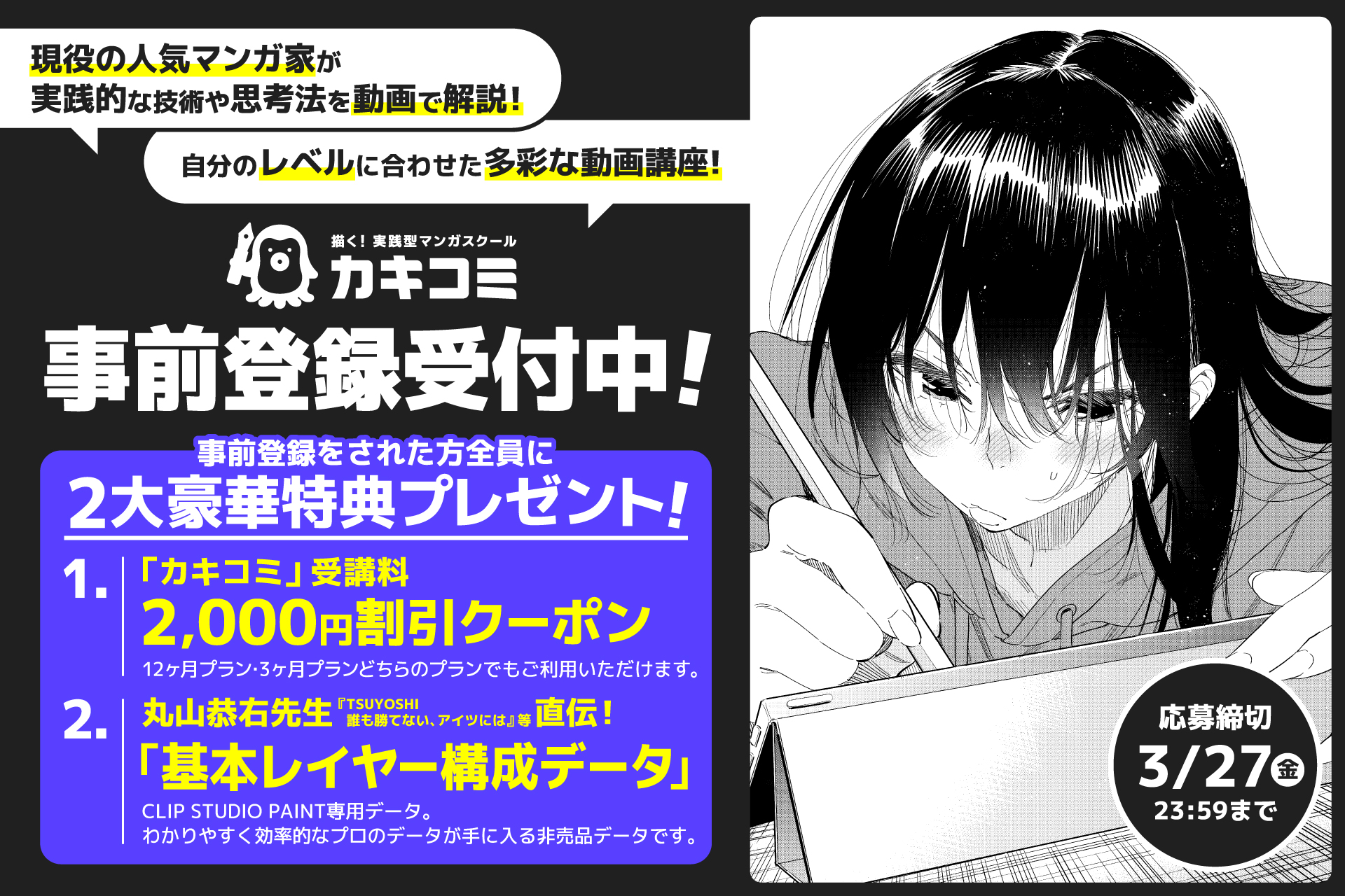 現役プロ漫画家による超実践型マンガスクール『カキコミ』事前登録開始!