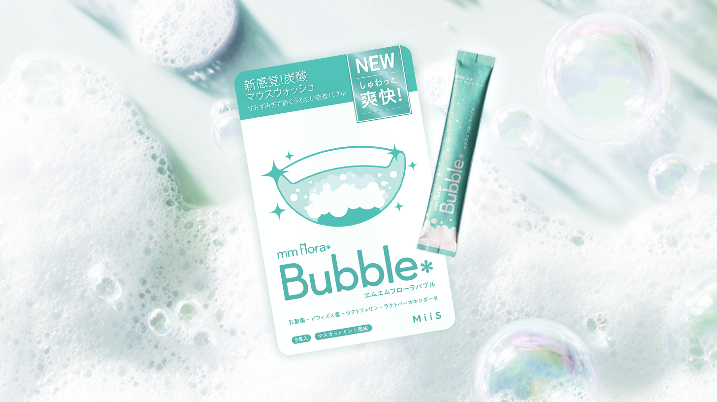 発売から約2か月で累計販売数2万個突破!飲み込み型マウスウォッシュ“エムエムフローラバブル”、待望の新フレーバー「マスカットミント風味」が2月25日発売!