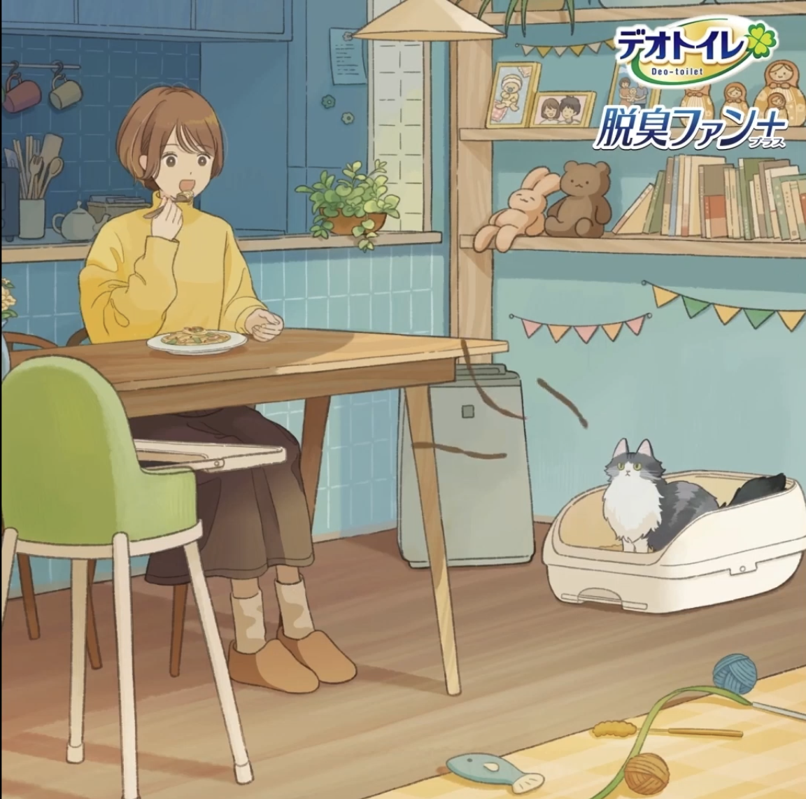 猫飼いのあるあるをアニメーションに!デオトイレ脱臭ファン+のワンカットアニメーション動画が2025年11月21日より広告配信!
