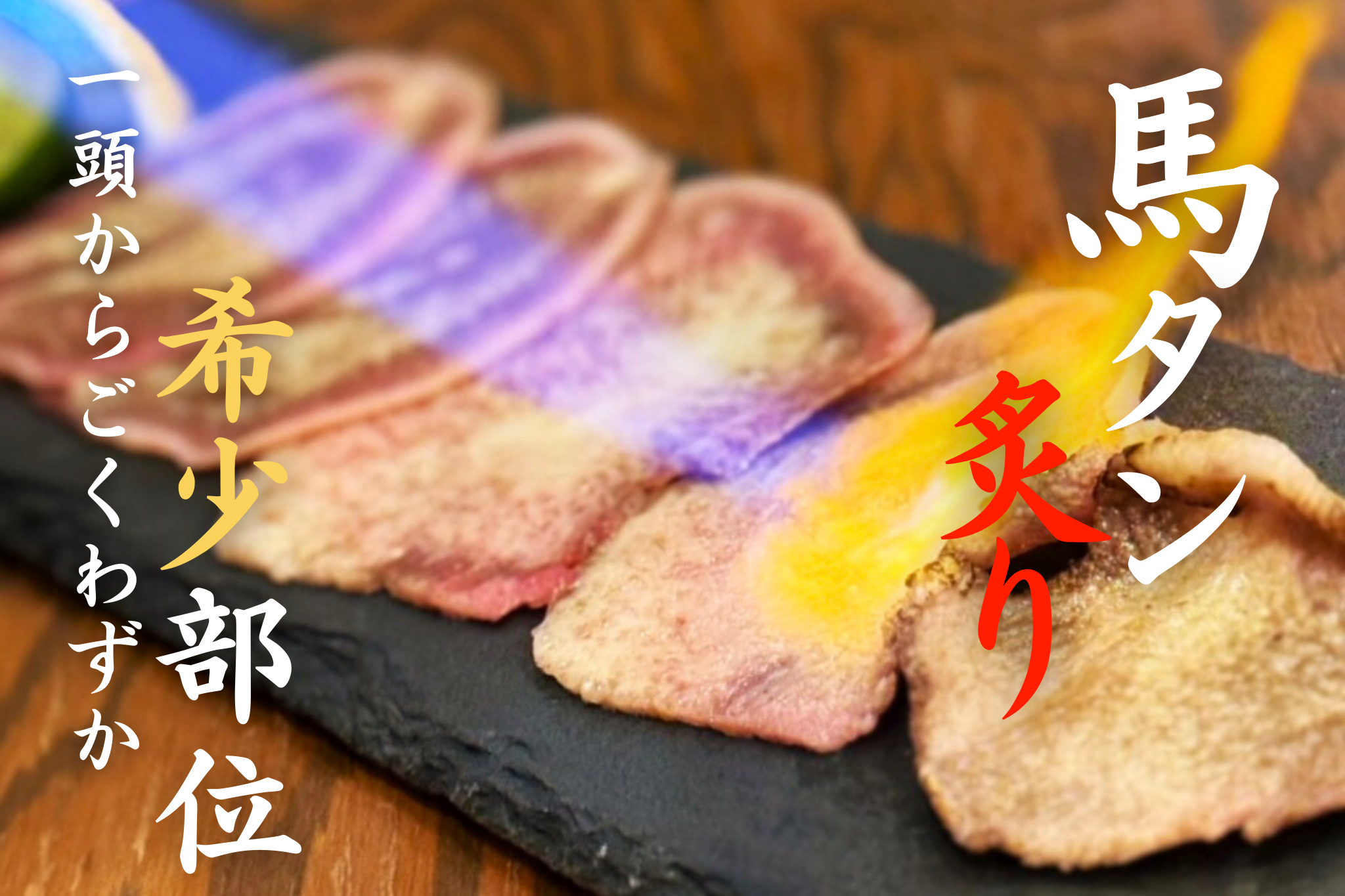馬肉専門店でも入荷困難の希少部位“馬のタン”を贅沢に炙りで楽しむ新商品登場! 【大衆馬肉酒場 馬王 堺筋本町店】