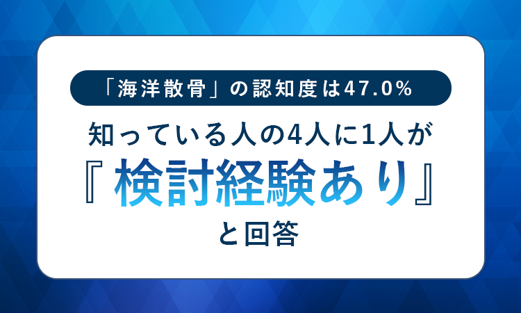 「海洋散骨」の認知度は47.0%。知っている人の4人に1人が「検討経験あり」と回答