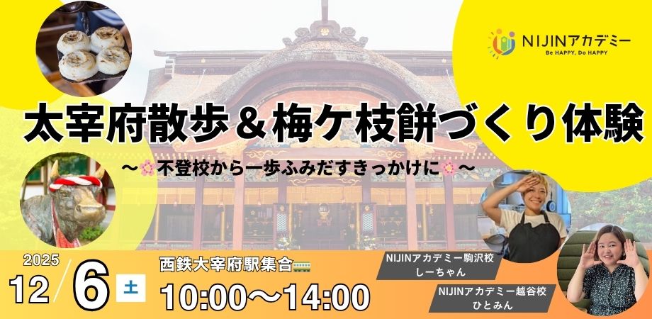 不登校の子どもの“外に出る一歩”を支援|太宰府で課外活動を12/6開催【NIJINアカデミー】