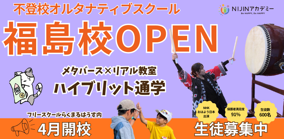 不登校オルティナブルスクール「NIJINアカデミー」は、東北2校目となるリアル校『福島校』を開校します