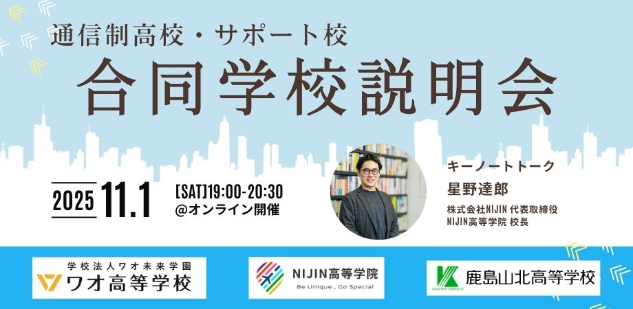 NIJIN高等学院主催「【全国の中3・高1生必見】通信制高校・サポート校オンライン合同学校説明会」を開催