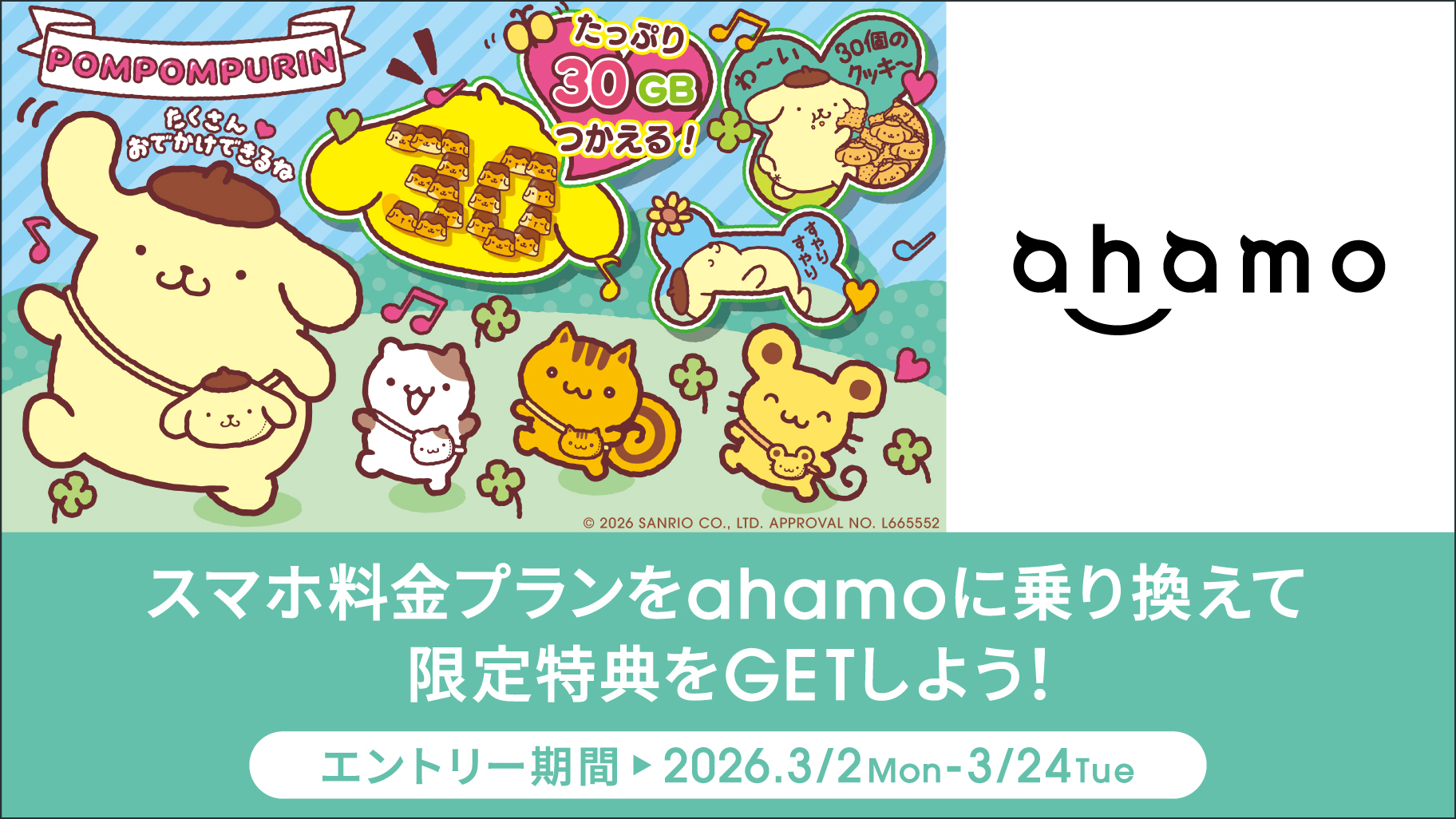 「ポムポムプリン×ahamo 30たっぷりキャンペーン」を開催!