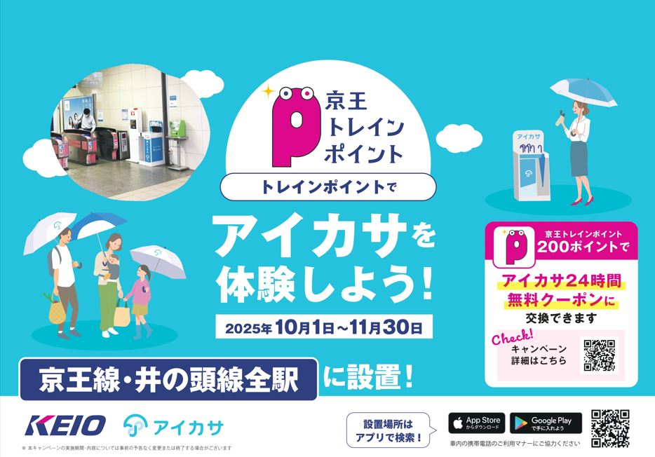 京王電鉄×アイカサ!10月1日~11月30日に、京王トレインポイントでお得にアイカサを利用できる期間限定キャンペーンを開催