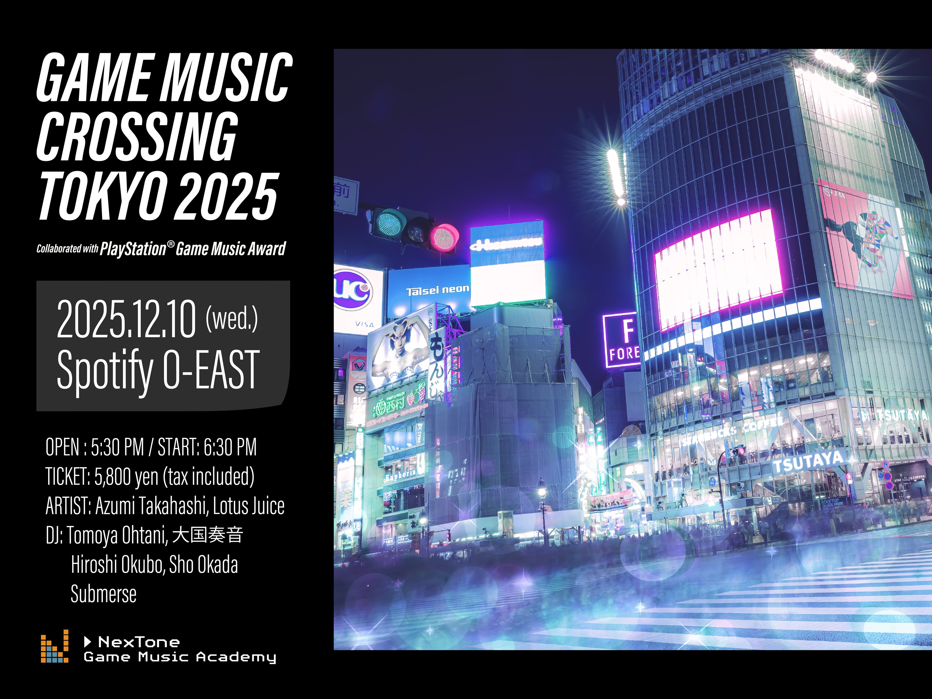 12/10(水)Spotify O-EASTにて、ゲーム音楽に特化したライブ&DJイベント「GAME MUSIC CROSSING TOKYO」開催