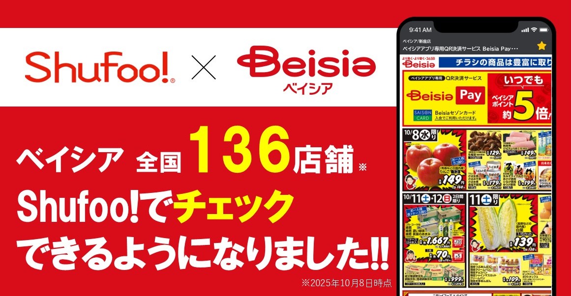 電子チラシサービスShufoo!、ショッピングセンターチェーン「ベイシア」のチラシがチェックできるようになりました!