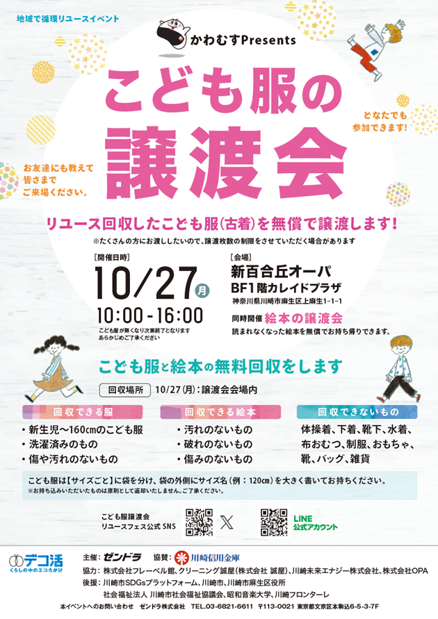 新百合丘オーパにて10月27日『こども服の譲渡会』開催 同時開催:『絵本の譲渡会』