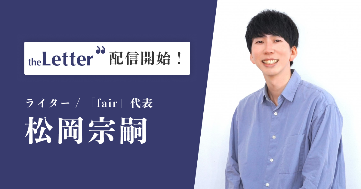 ライター / 一般社団法人「fair」代表の「松岡 宗嗣」氏がプロ向け執筆プラットフォーム「theLetter」でニュースレター配信を開始
