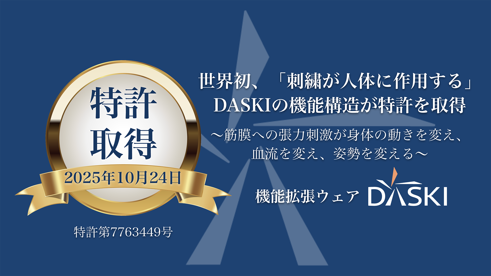 世界初、「刺繍が人体に作用する」リカバリーウェア DASKIの機能構造が特許を取得|記念キャンペーンを実施