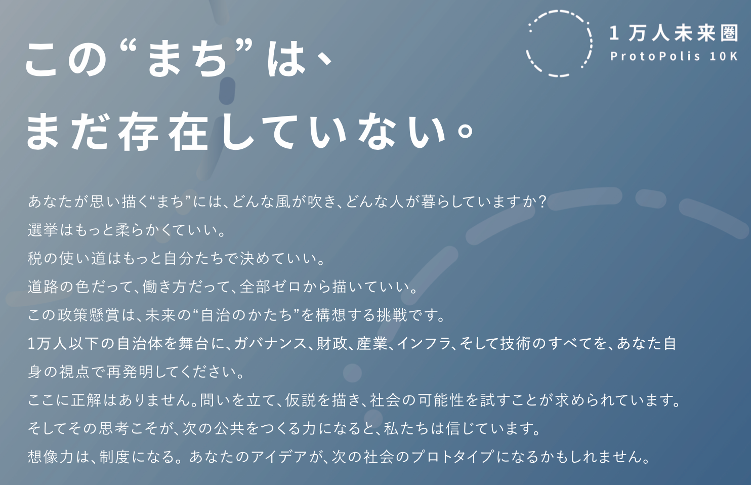 政策懸賞論文「1万人未来圏」募集開始 ―制度・経済・技術で描く、小さな社会のプロトタイプ―