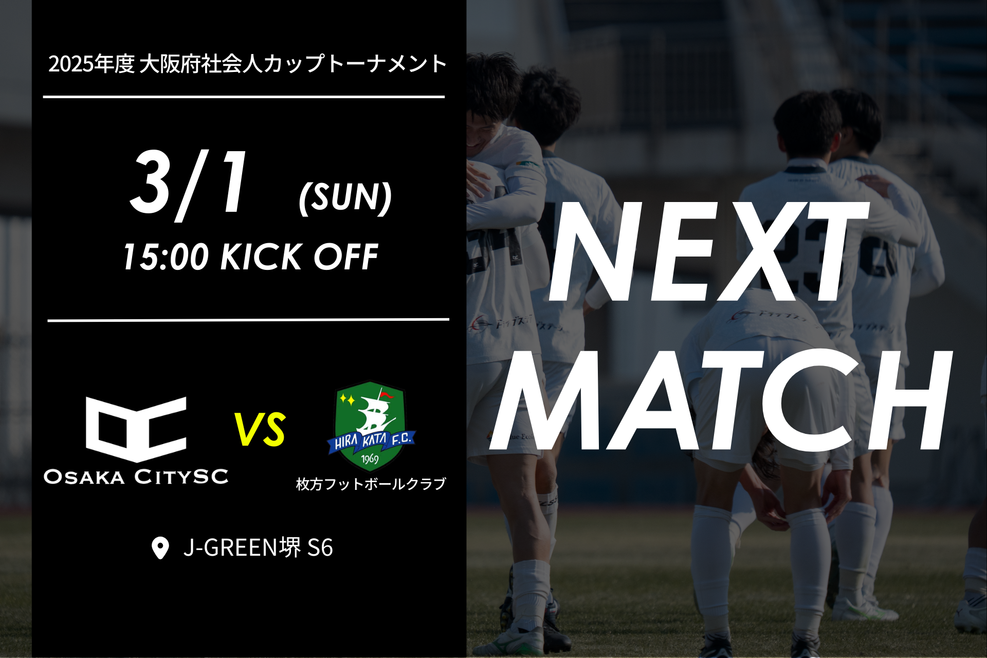 【試合告知】2025年度 大阪府社会人カップトーナメント| vs 枚方フットボールクラブ 3月1日(日)15:00キックオフ