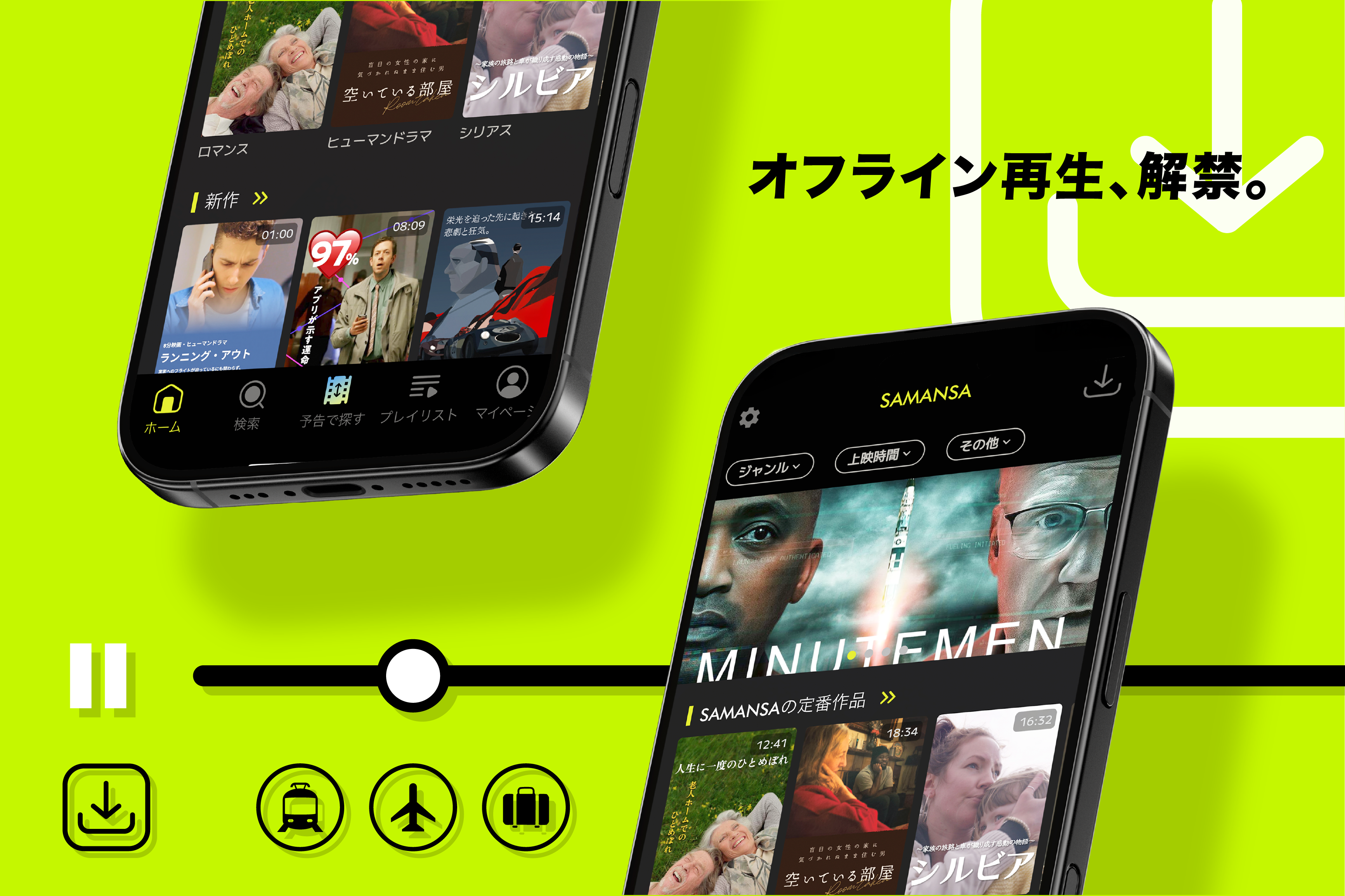 ショート映画配信サービス「SAMANSA」、オフライン再生対応のダウンロード機能をリリース。電波を気にせず、移動中の“10分”を至高の映画体験へ。