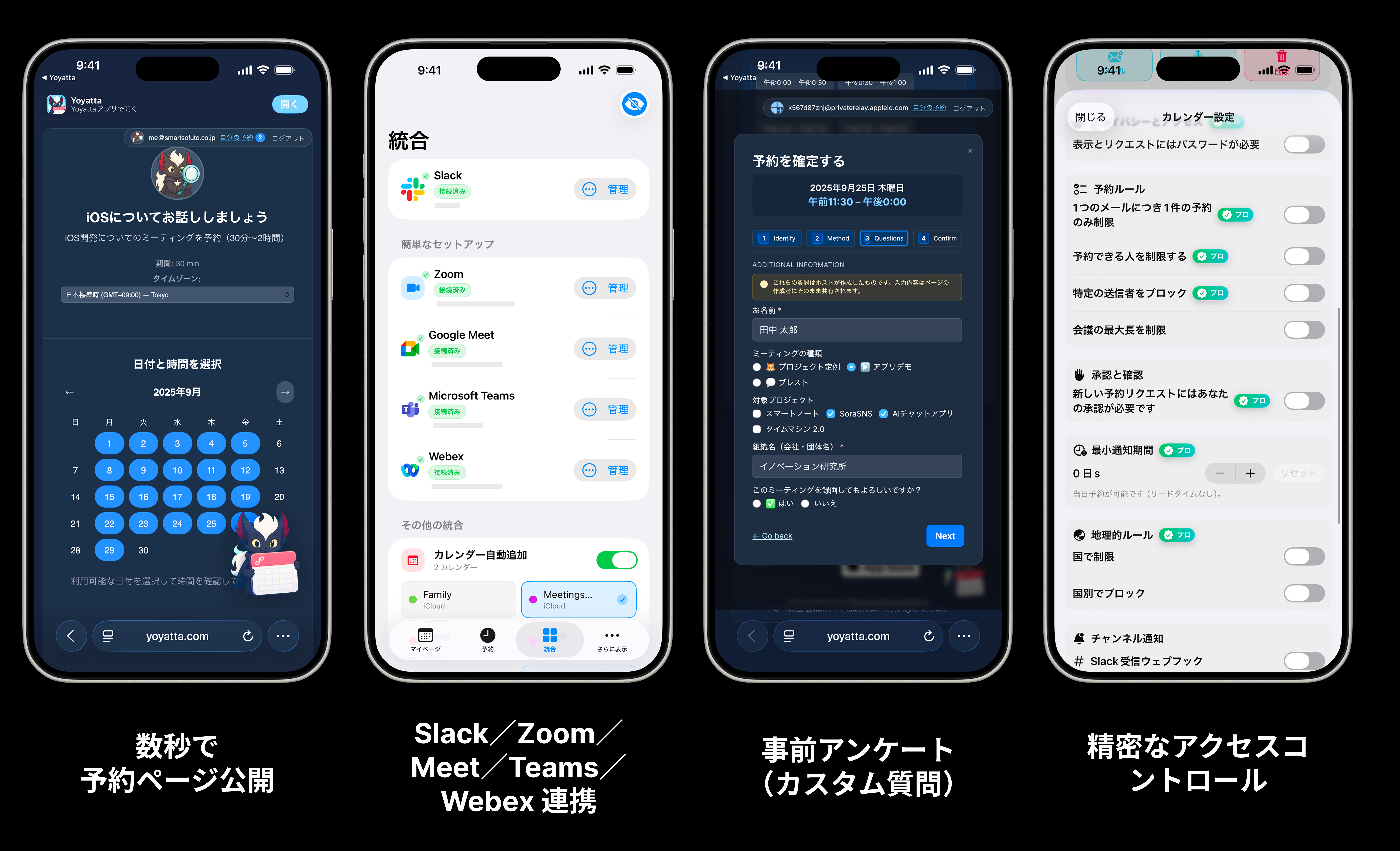 検証必須の予約・日程調整アプリ「Yoyatta」をリリース:フォーム標準搭載&会議リンク自動発行