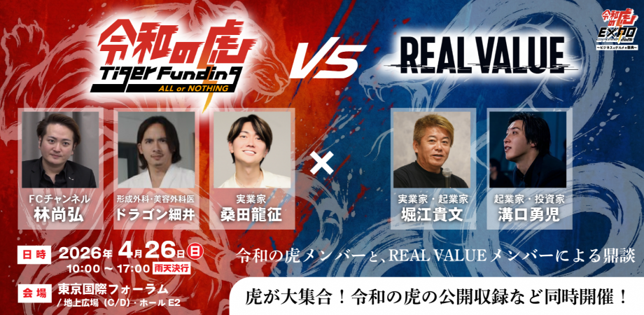 【4月26日開催】大人気YouTube番組が東京国際フォーラムに初上陸!『令和の虎EXPO All or Nothing 2026~ビジネスとグルメの祭典~』がついに開幕