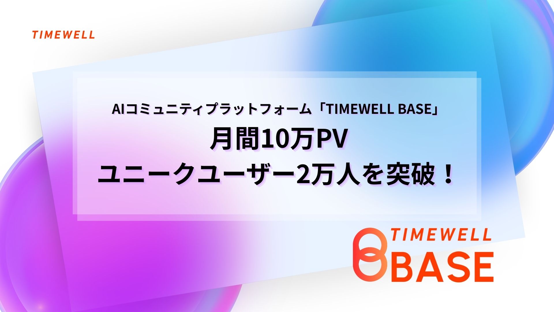 AIコミュニティプラットフォーム「TIMEWELL BASE」、月間10万PV・ユニークユーザー2万人を突破!