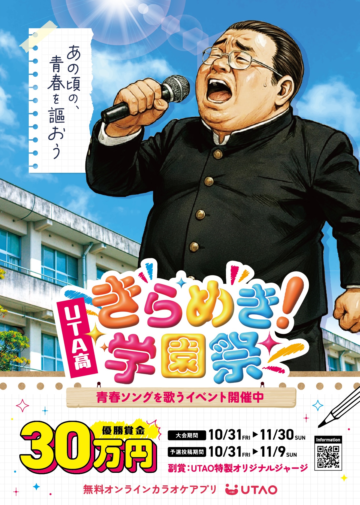 カラオケアプリ「UTAO」が仕掛ける「歌の学園祭」を開催決定!思い出を歌に乗せて青春ソングを謳おう!