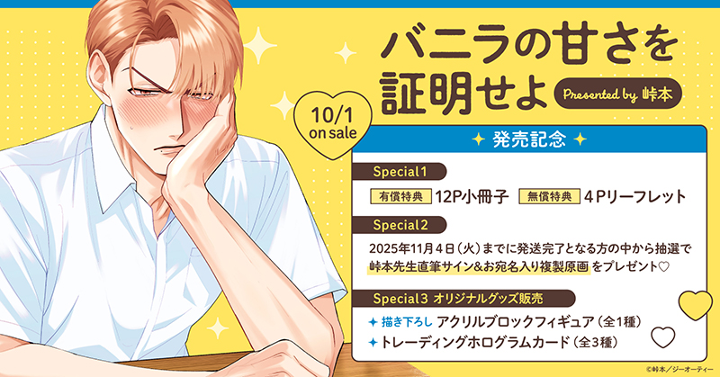 直筆サイン入り複製原画が当たる!峠本先生『バニラの甘さを証明せよ』発売記念キャンペーン開催!【ホーリンラブブックス】