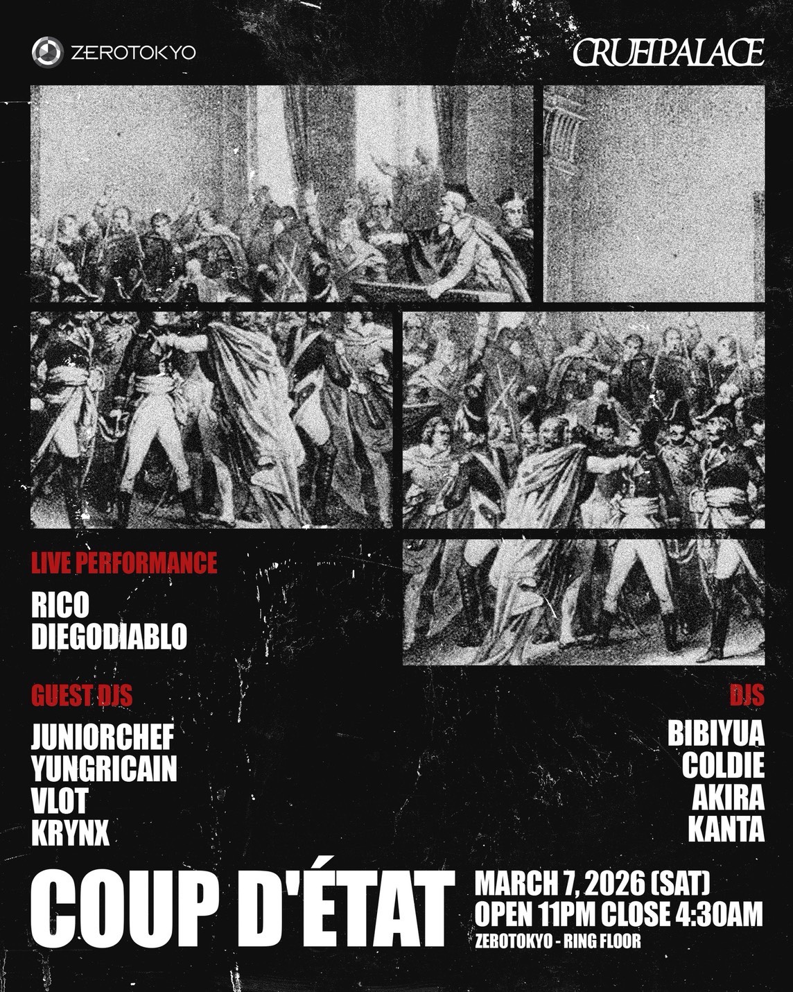 ”CRUELPALACE”による音楽・カルチャーイベント「COUP D'ETAT」がZEROTOKYOにて開催