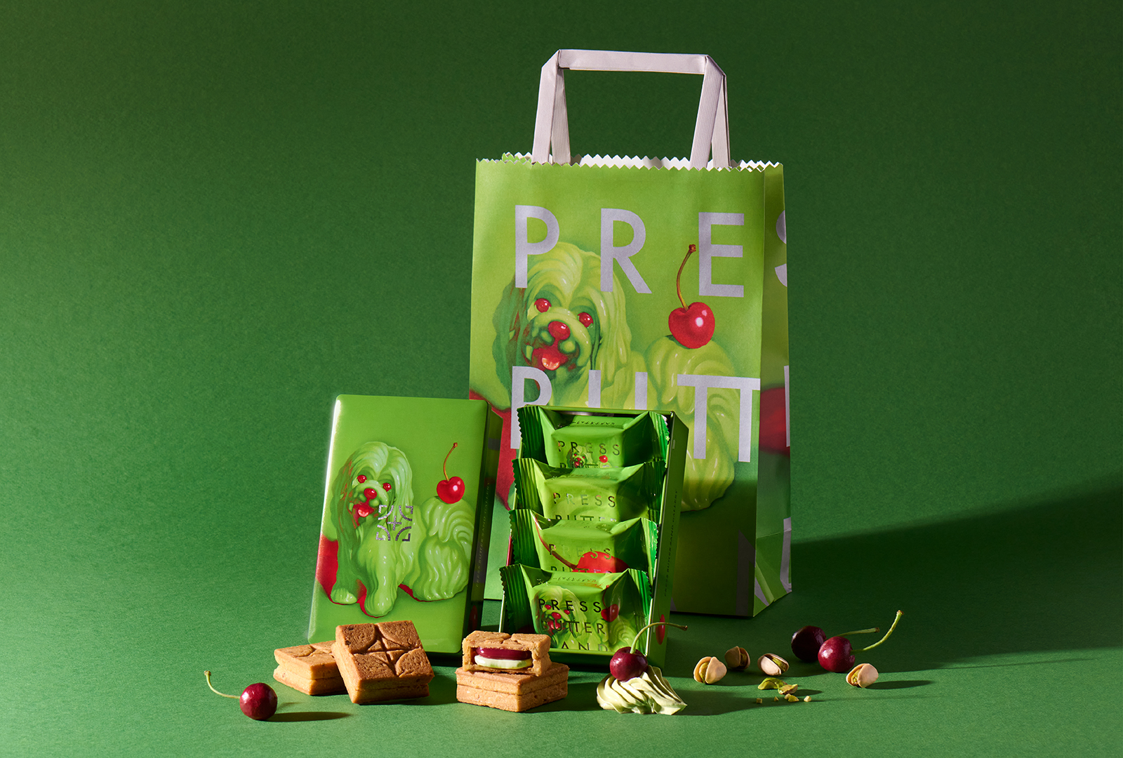 【期間限定】「PRESS BUTTER SAND」× 「ArtSticker」“五感で味わうお菓子体験”プロジェクト。第2弾はアーティスト・島田萌とのコラボ商品「ピスタチオチェリー」