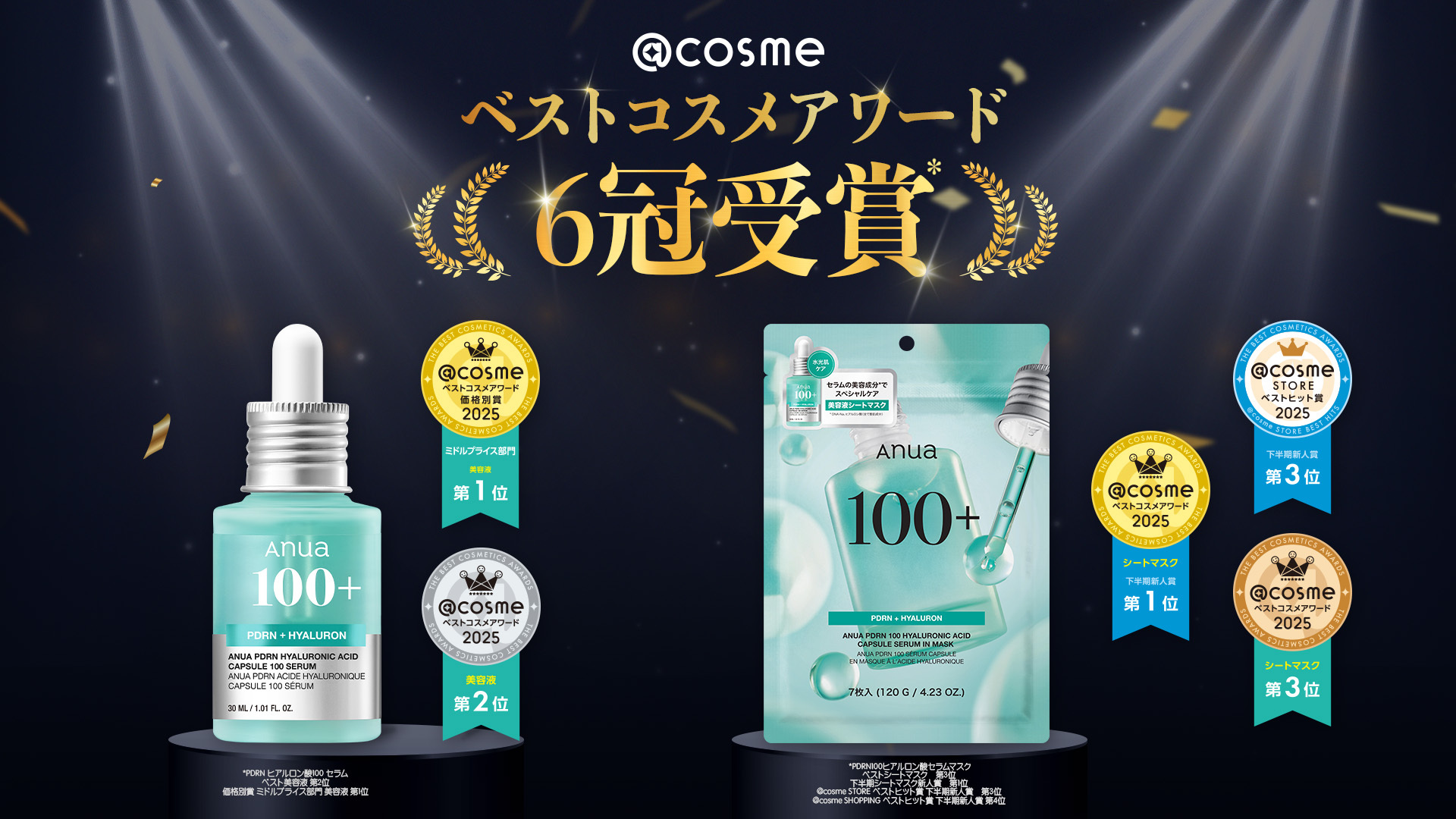 Anua、@cosmeベストコスメアワード2025で6冠受賞 シリーズ累計約680万個*を突破した“PDRNシリーズ”が快挙達成