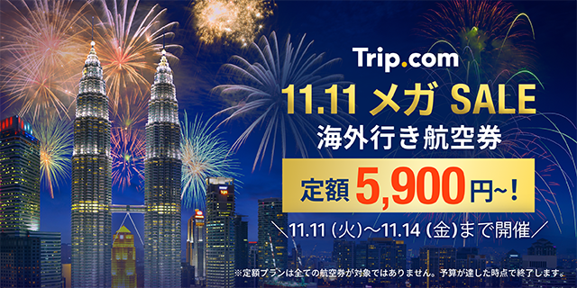 Trip.com、今年最後のビッグセール「11.11 メガ SALE」を11月11日(火)から4日間限定開催!