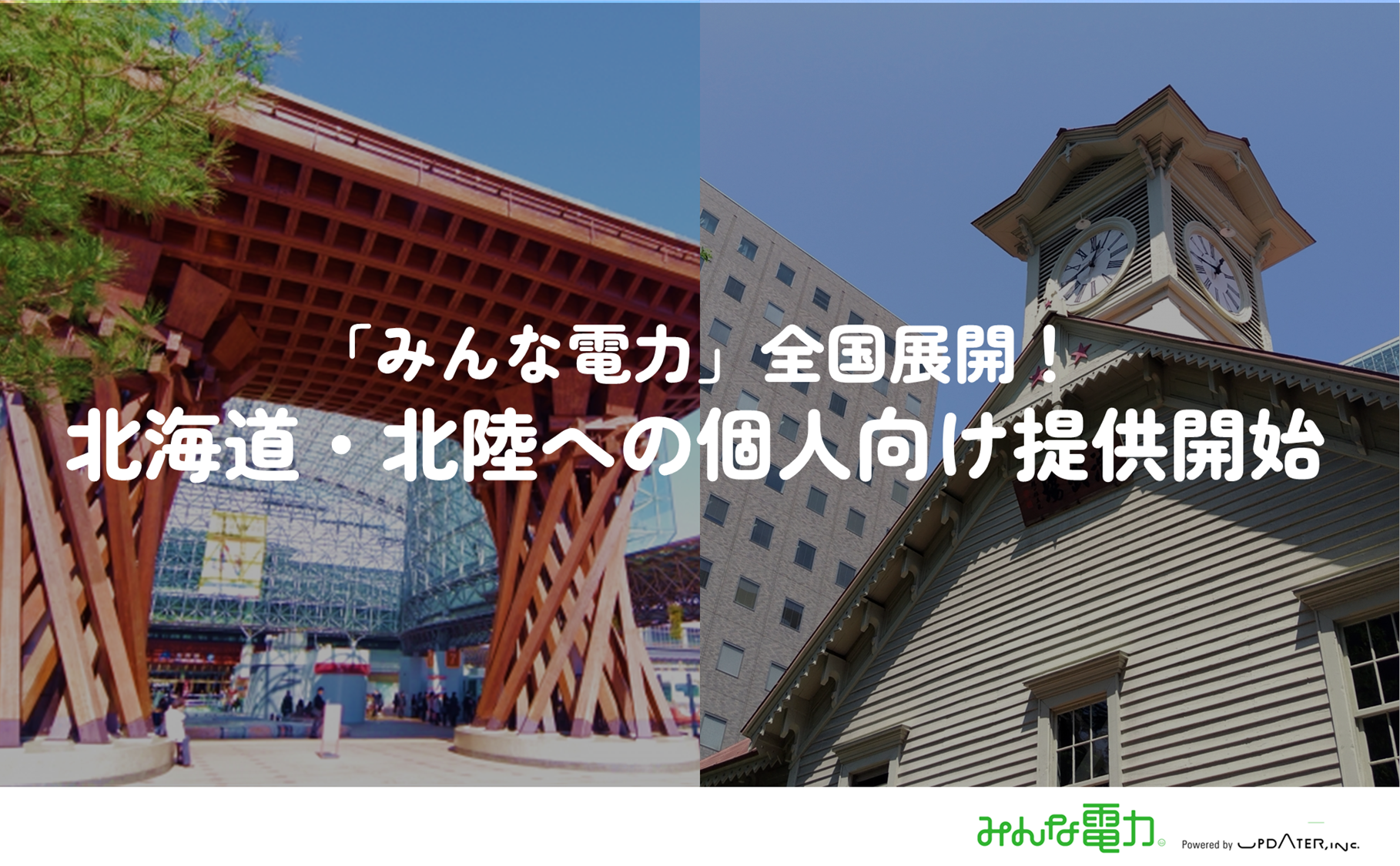UPDATER、「みんな電力」の個人向け提供を北海道・北陸エリアへ拡大、沖縄を除く全国へ