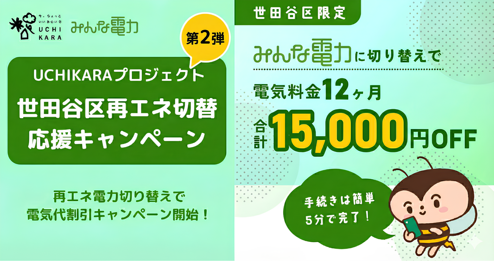 世田谷区限定!申請不要で最大15,000円割引みんな電力、再エネ切替キャンペーン第2弾を12月1日開始