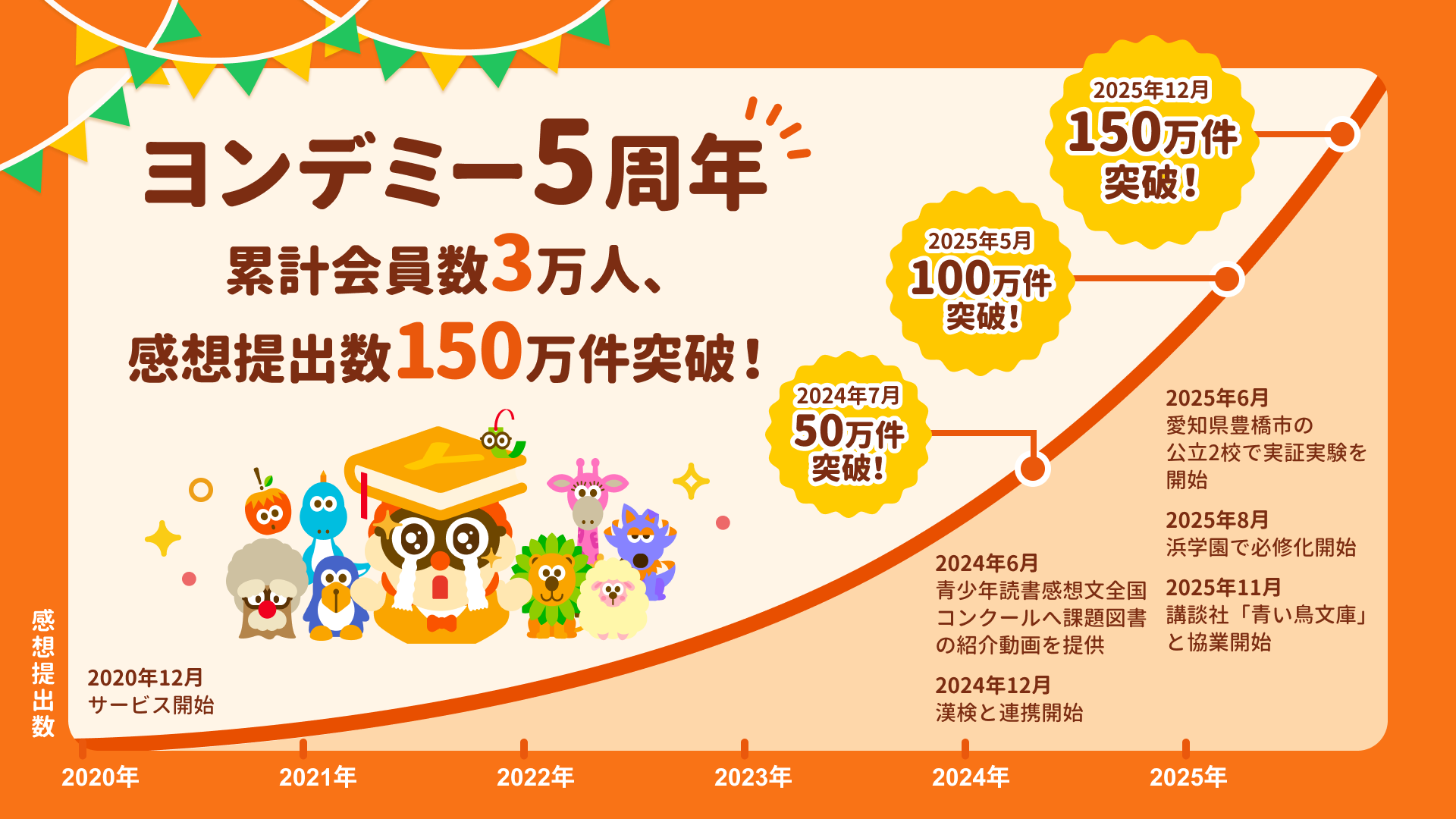 ヨンデミー、サービス開始5周年で150万件の「読書体験」を創出。受講者の読書量は一般家庭の8倍に