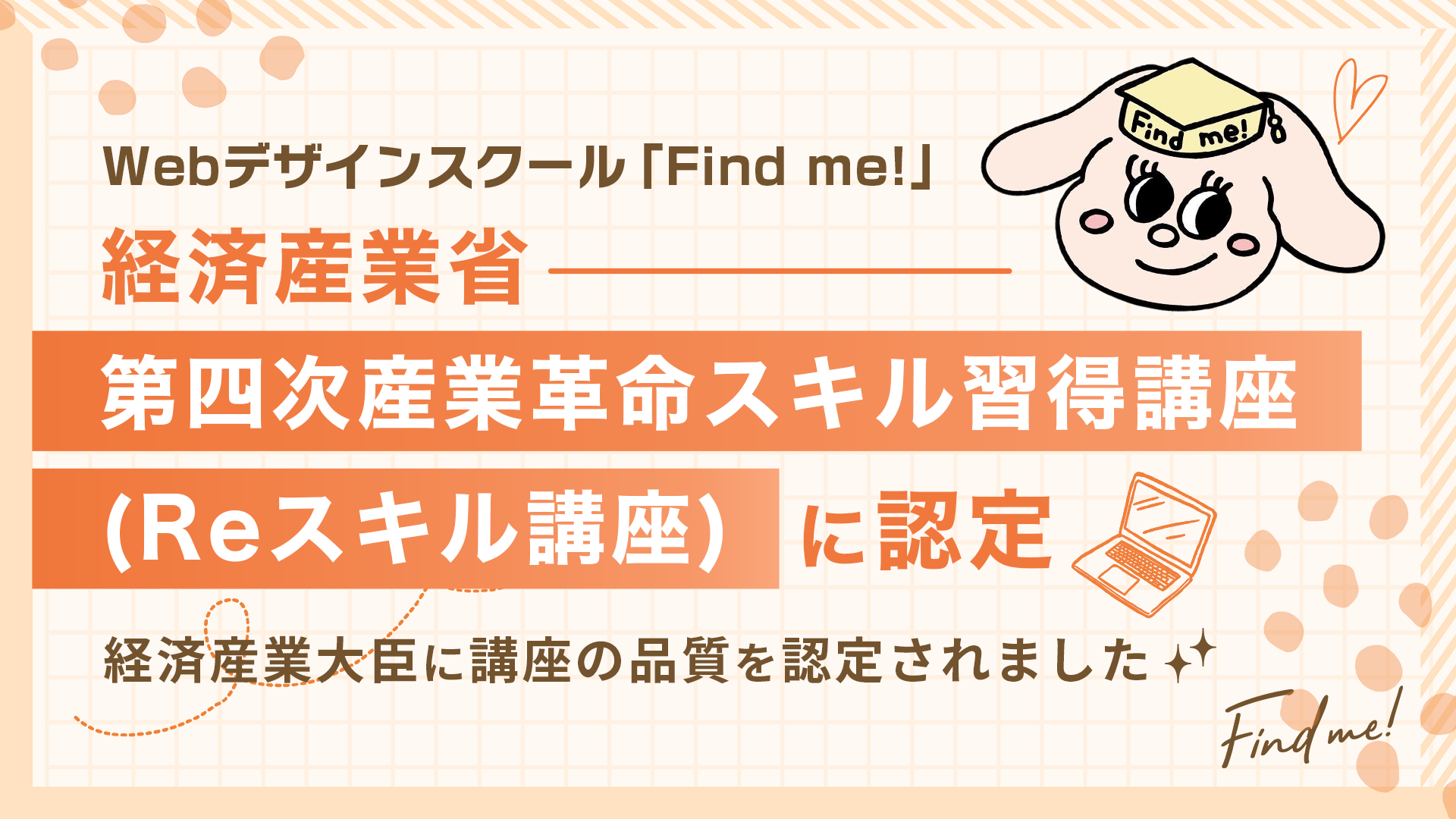 Webデザインスクール「Find me!」の4講座が経済産業省「Reスキル講座」に認定/専門実践教育訓練給付金の指定も決定