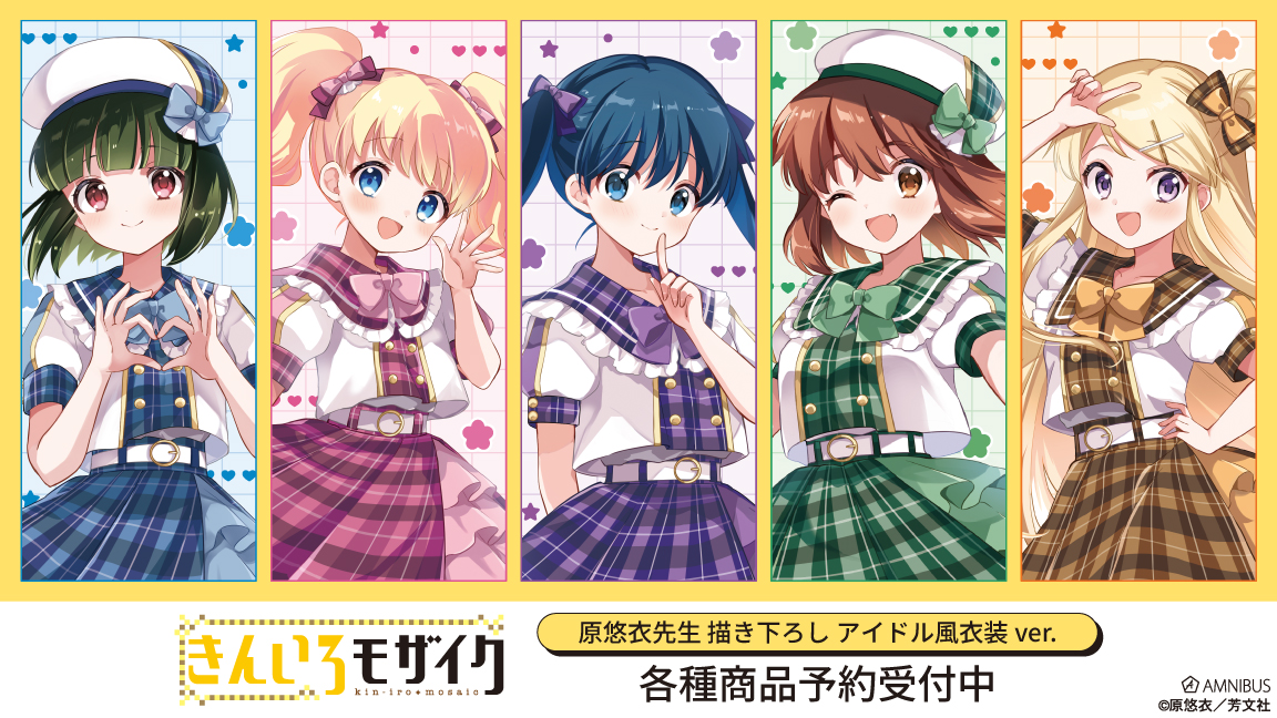 『きんいろモザイク』の原悠衣先生 描き下ろし アイドル風衣装ver. トレーディングダイカットステッカーなどの受注を開始!!アニメ・漫画のオリジナルグッズを販売する「AMNIBUS」にて