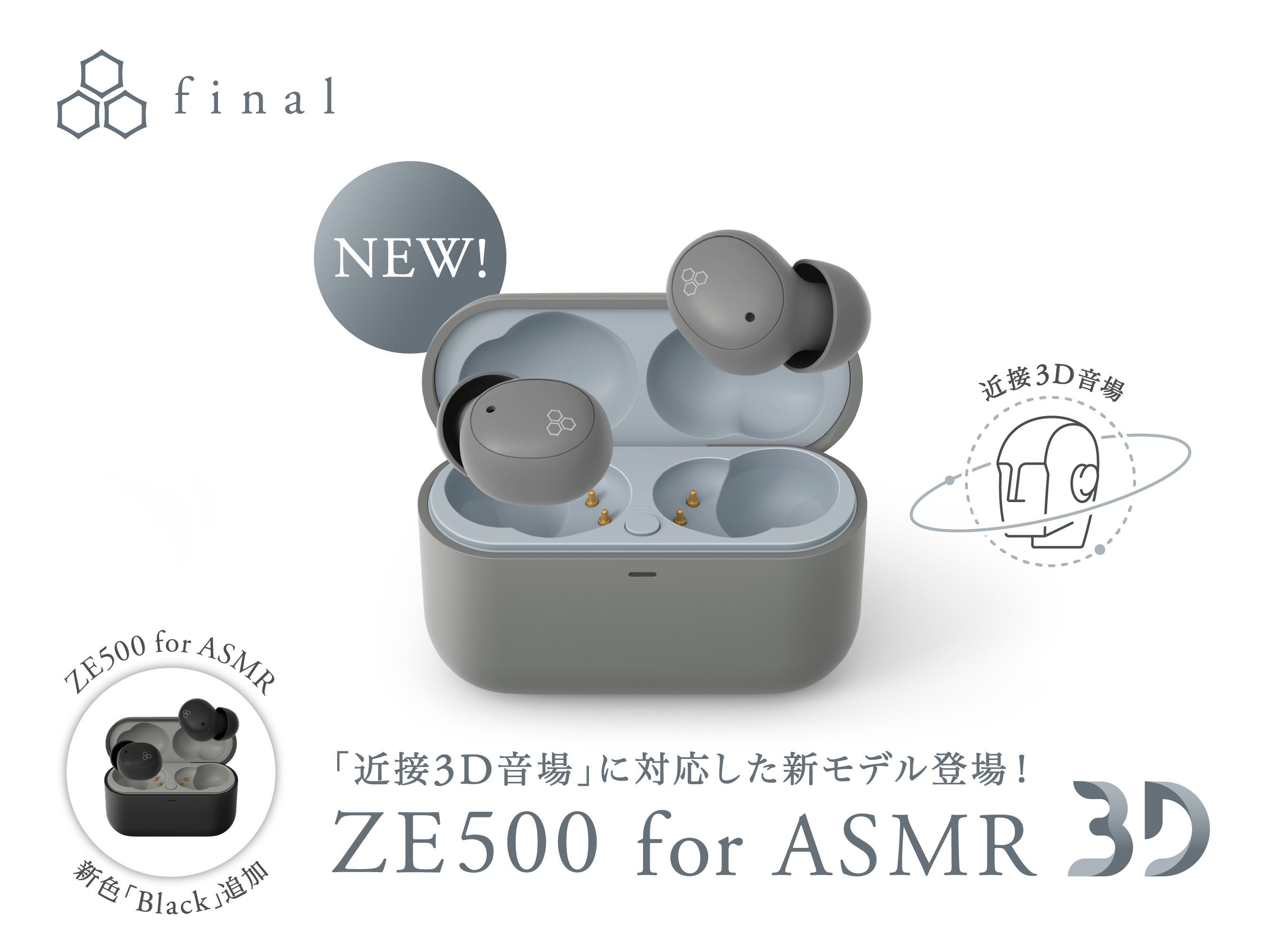 【Amazon.co.jp 限定】近接3D音場に対応したASMR専用ワイヤレスイヤホン「ZE500 for ASMR 3D」登場! さらに、「ZE500 for ASMR」の新色 「BLACK」も
