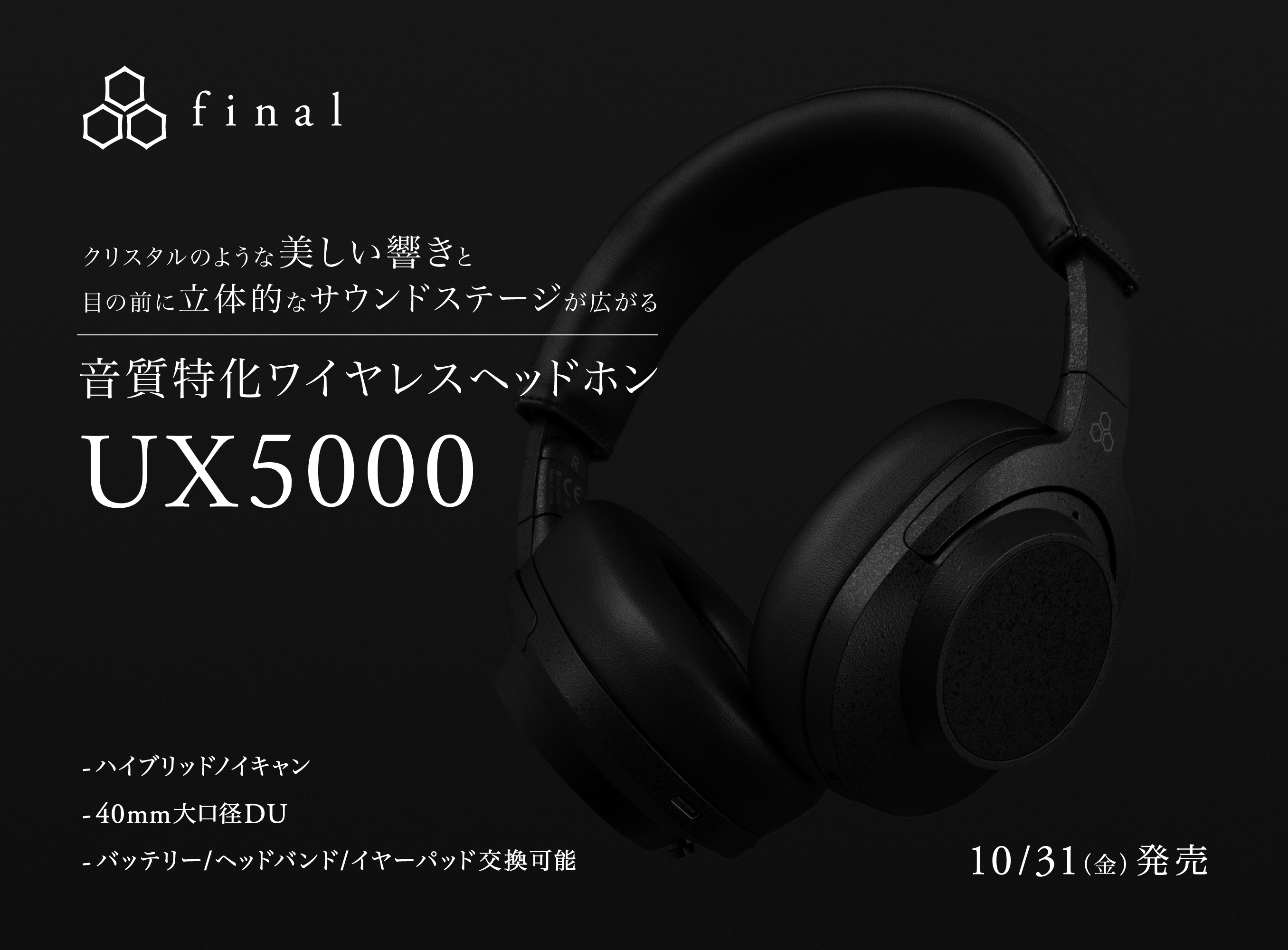 UX series最新モデル「UX5000」登場 クリスタルのような美しい響きと目の前に立体的なサウンドステージが広がる音質特化ワイヤレスヘッドホン