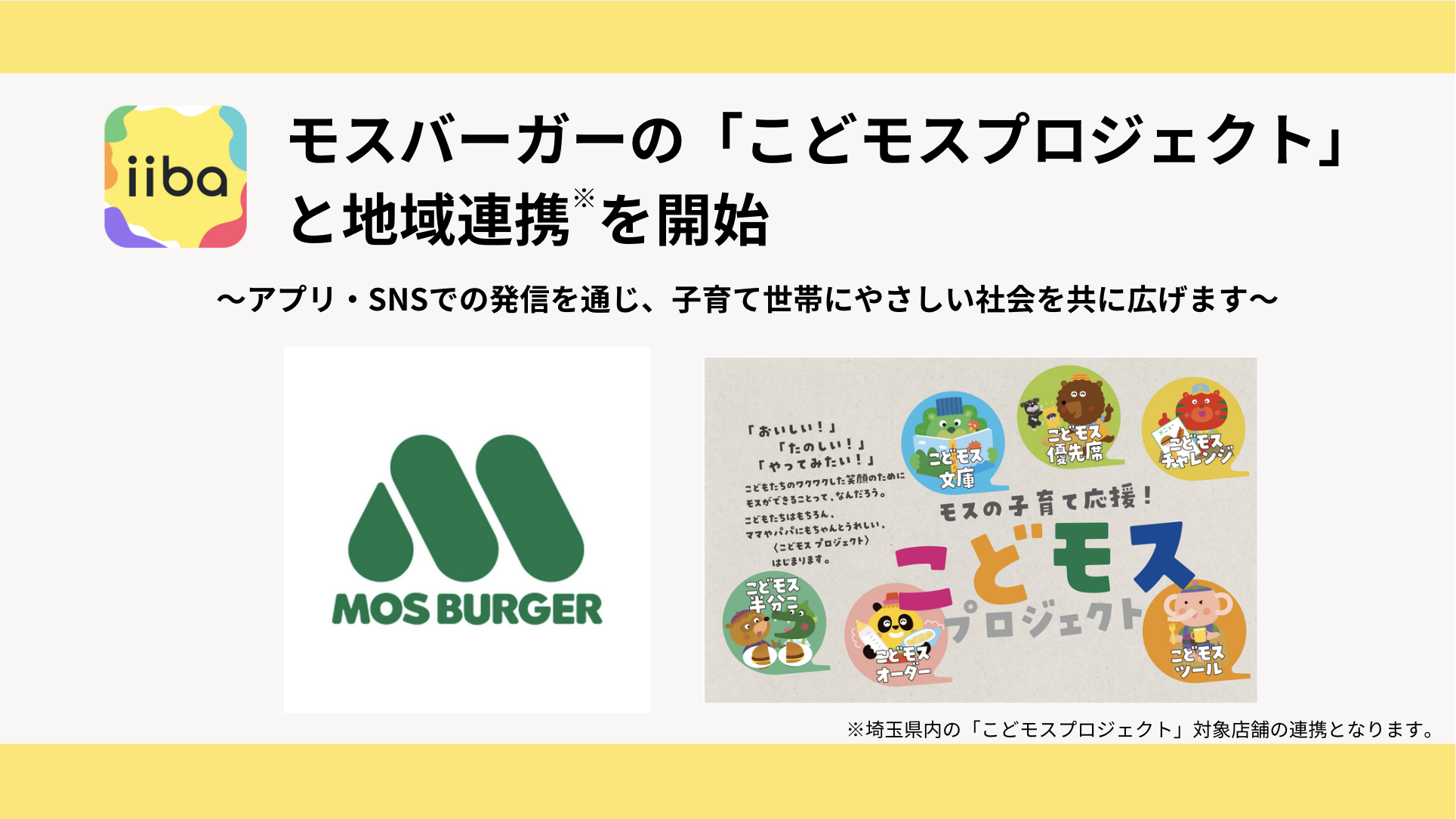 子育てマップアプリ「iiba」、モスバーガーの「こどモスプロジェクト」と地域連携を開始