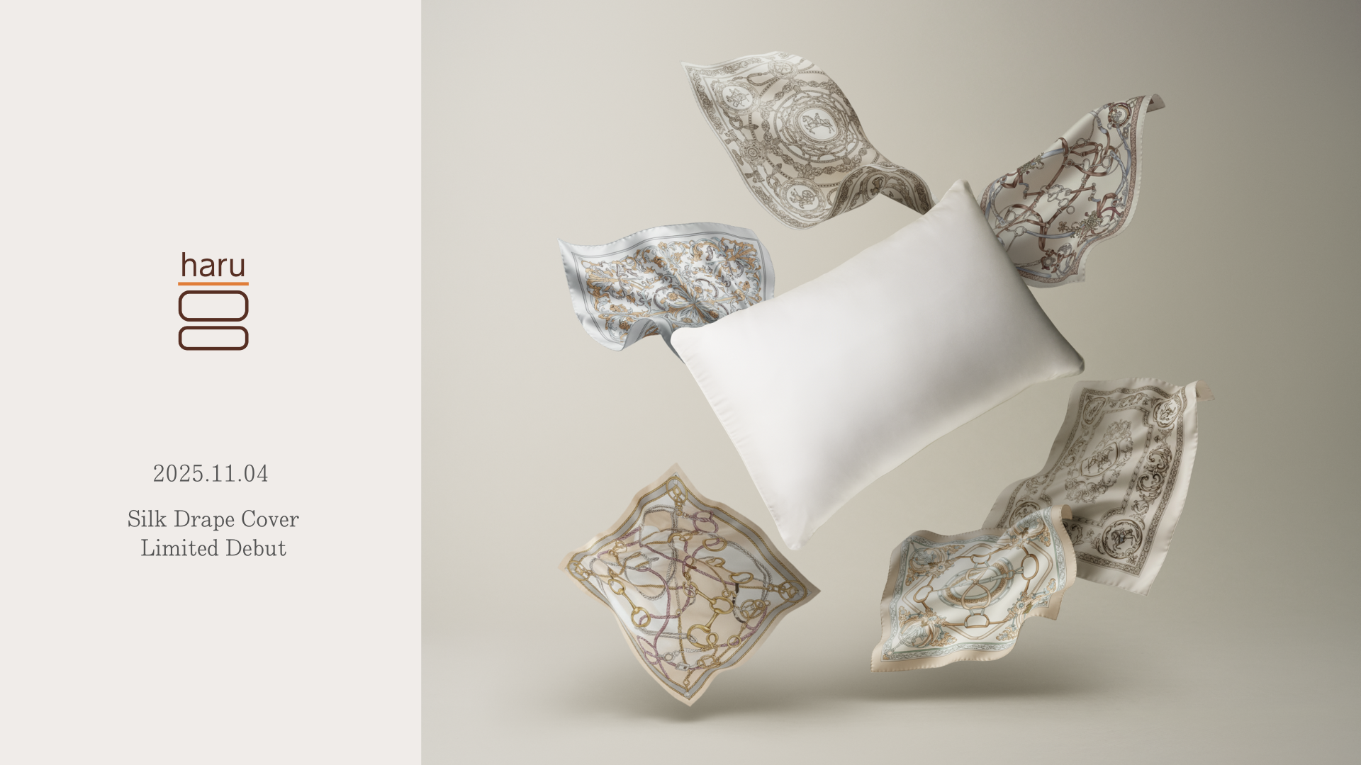 【haru/数量限販売】最高ランクのシルクを使用した枕カバー『シルクドレープカバー』を11月4日(火)より発売。