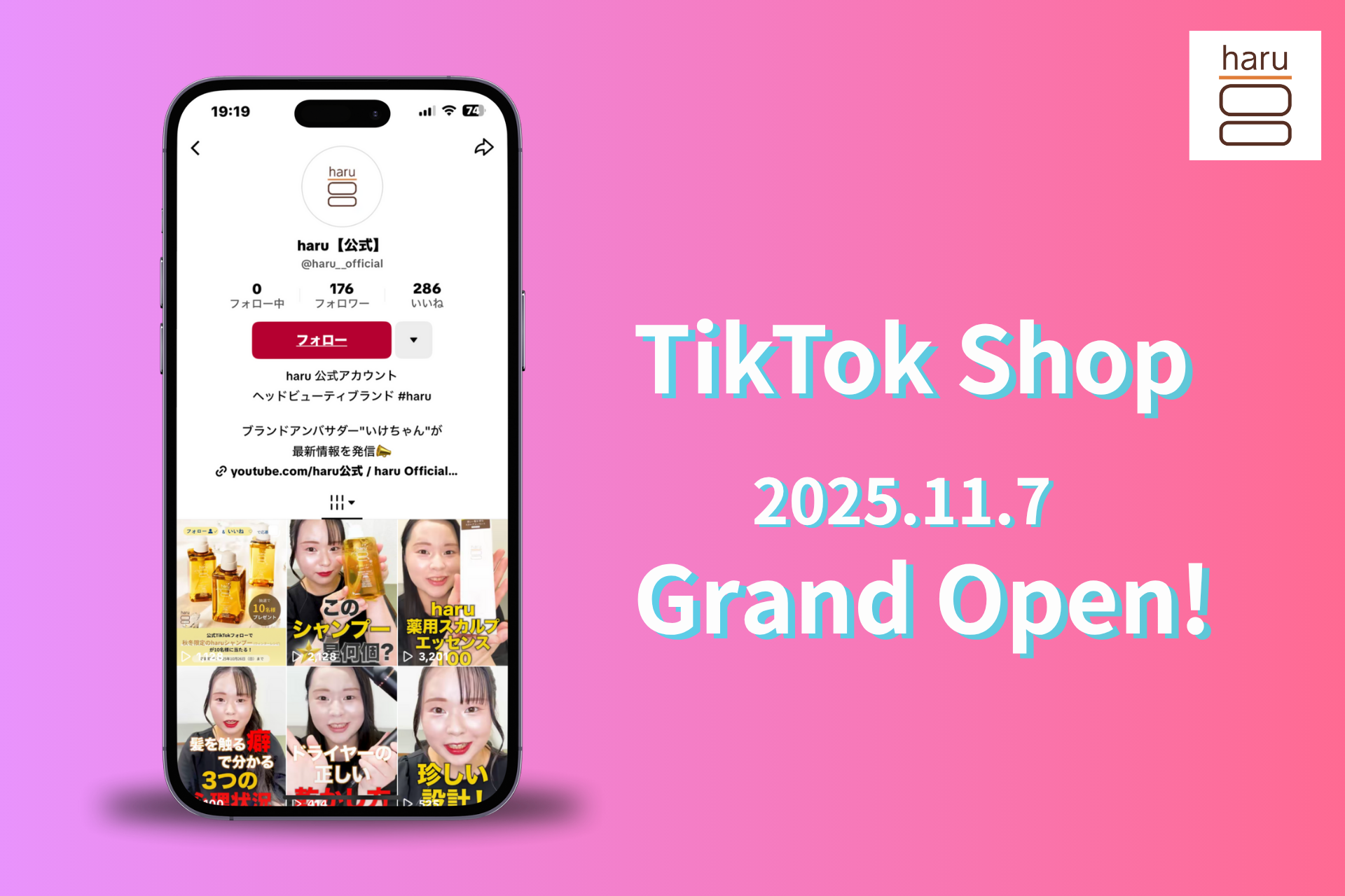 【新店オープン】「kurokamiスカルプ(haruシャンプー)」で人気のヘッドビューティブランド「haru」が、TikTok Shop を 2025年 11月7日(金)にグランドオープン!