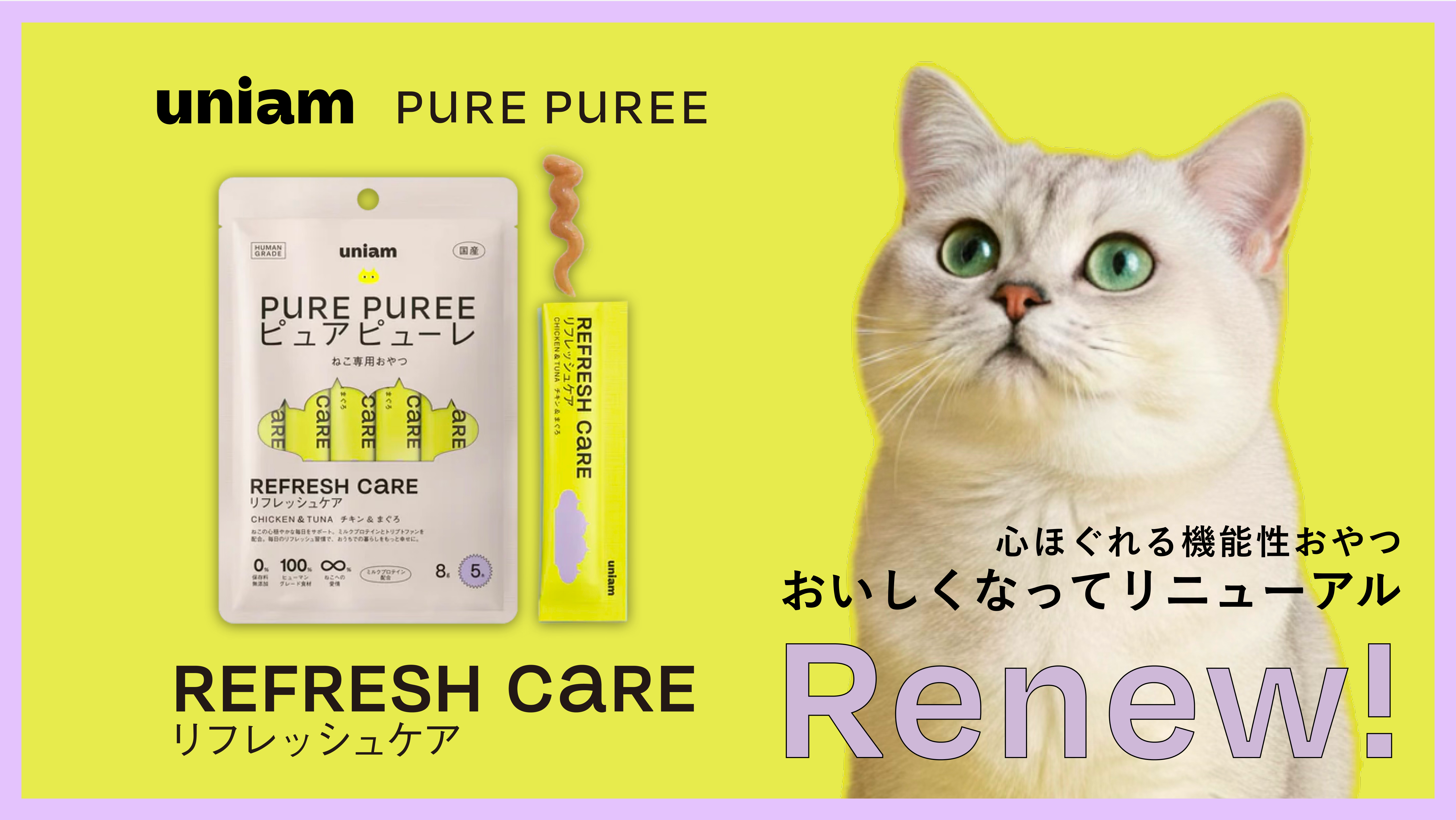 【ねこ特化ヘルスケアブランドuniam】メディカル発想のピュアピューレ「リフレッシュケア」がおいしさアップ!2026年1月28日より順次リニューアル販売開始!