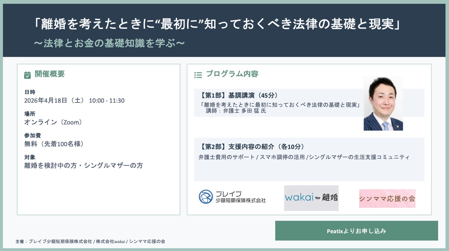 離婚で後悔しないために弁護士が解説「法律とお金の基礎知識」無料セミナー