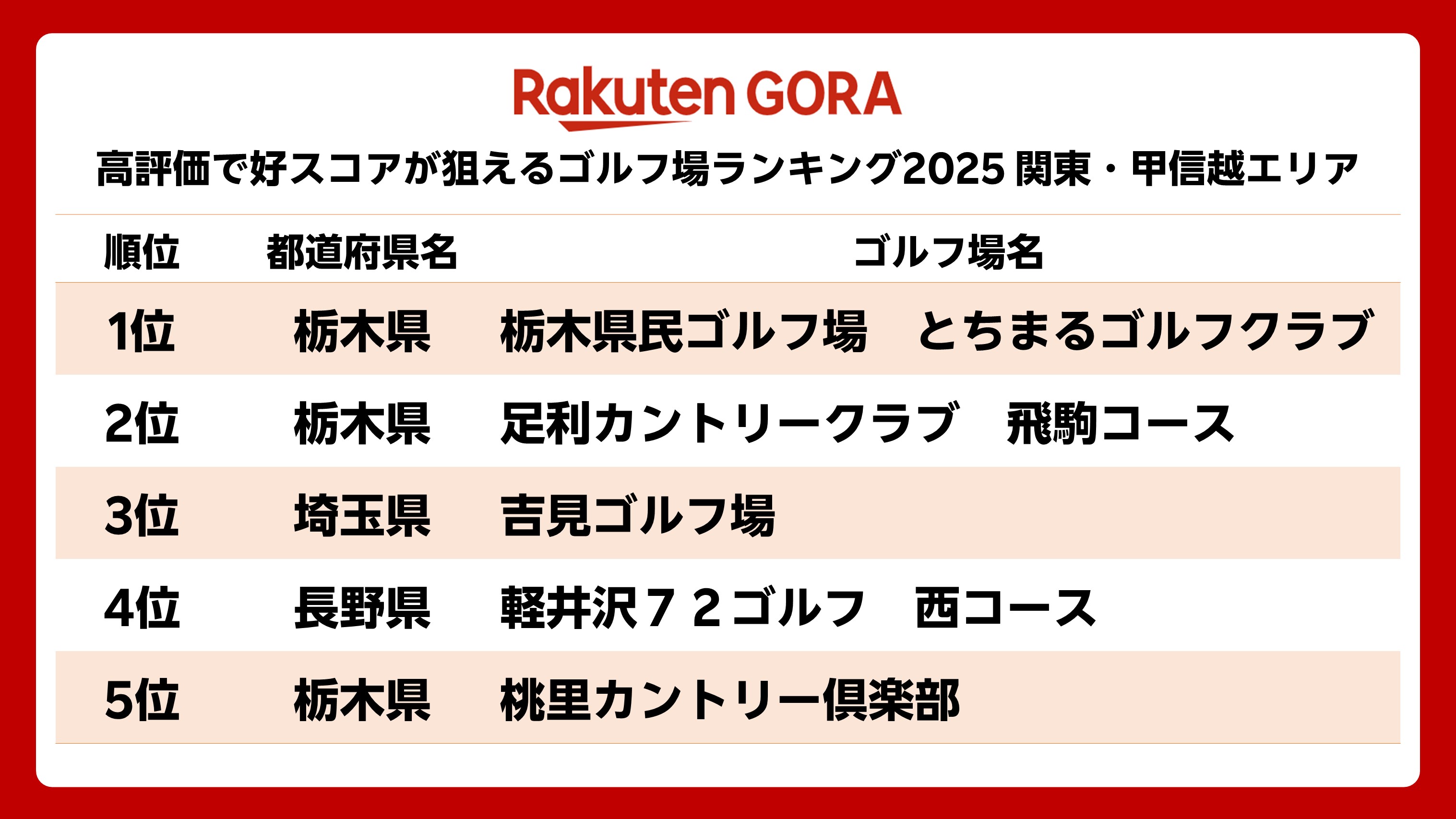 「楽天GORA」、「高評価で好スコアが狙えるゴルフ場ランキング2025」を発表