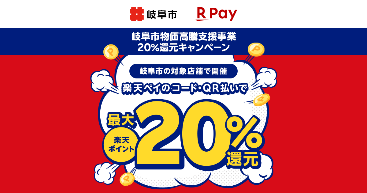 「楽天ペイ」、岐阜県岐阜市が実施する「岐阜市物価高騰支援事業20%還元キャンペーン」に参加