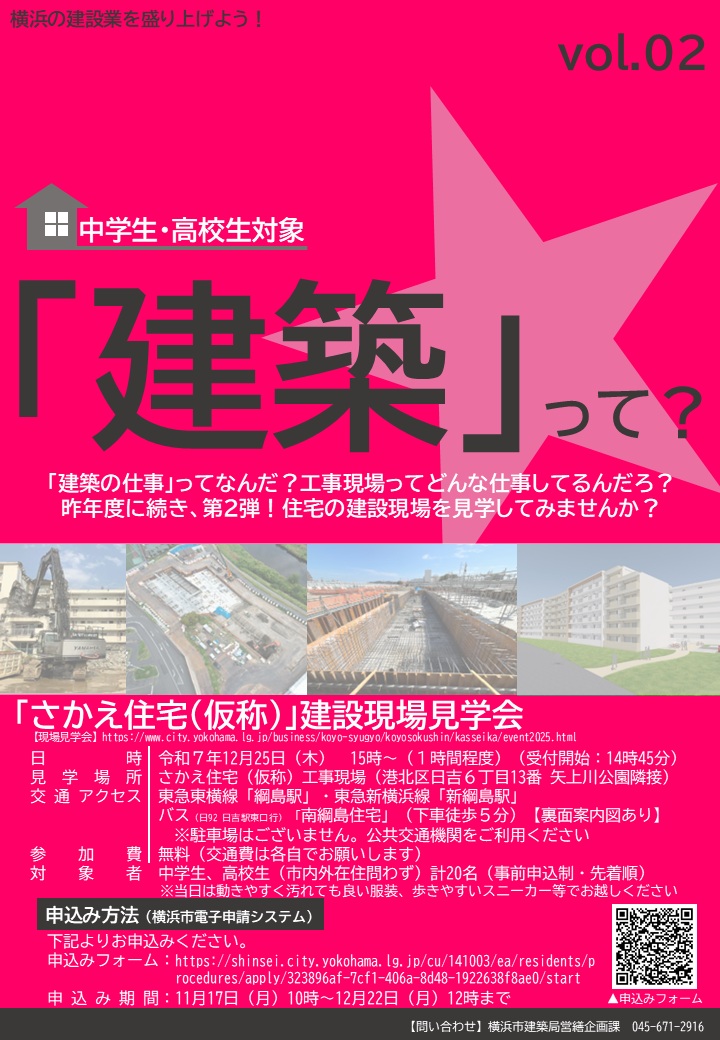 【事前申込制】12/25開催「建築」ってなんだ?第2弾「さかえ住宅(仮称)」建設現場にて中高生向け現場見学会を開催します!