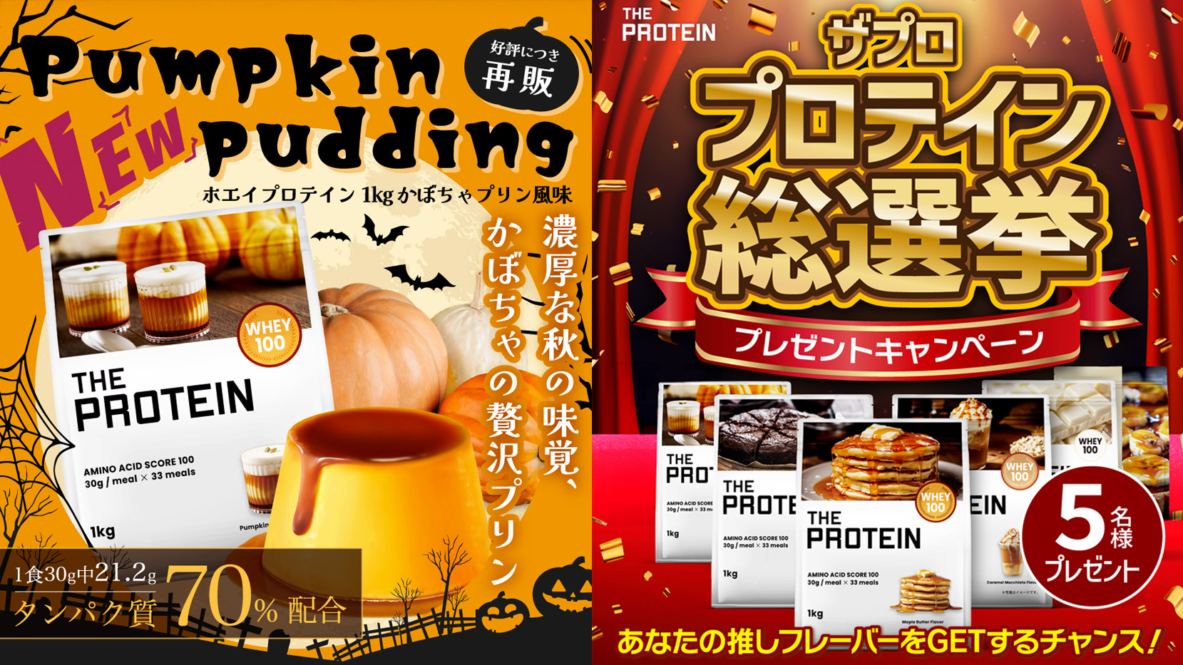 【数量限定で人気フレーバーが勢ぞろい!】THE PROTEIN(通称:ザプロ)から秋の味覚をぎゅっと詰め込んだ〈かぼちゃプリン風味〉が復活!6種の人気フレーバー復刻を記念してキャンペーンも実施