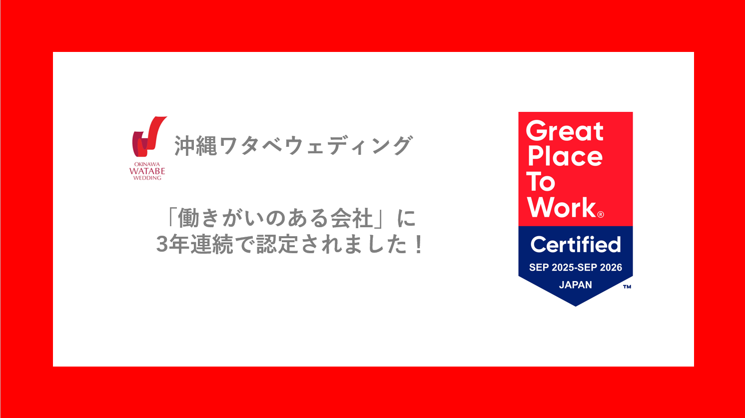 沖縄ワタベウェディング株式会社、3年連続で「働きがいのある会社」に認定!継続的な取り組みにより「オープンなコミュニケーション文化」が定着