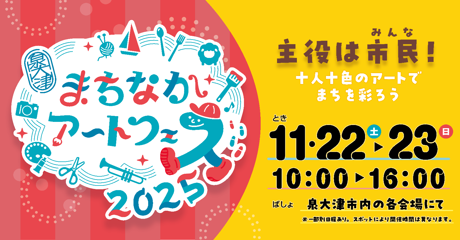 大阪府・泉大津市で自分の好きなアートに出会える2日間「まちなかアートフェス2025」を11月22日、23日に開催(PR TIMES ママ)